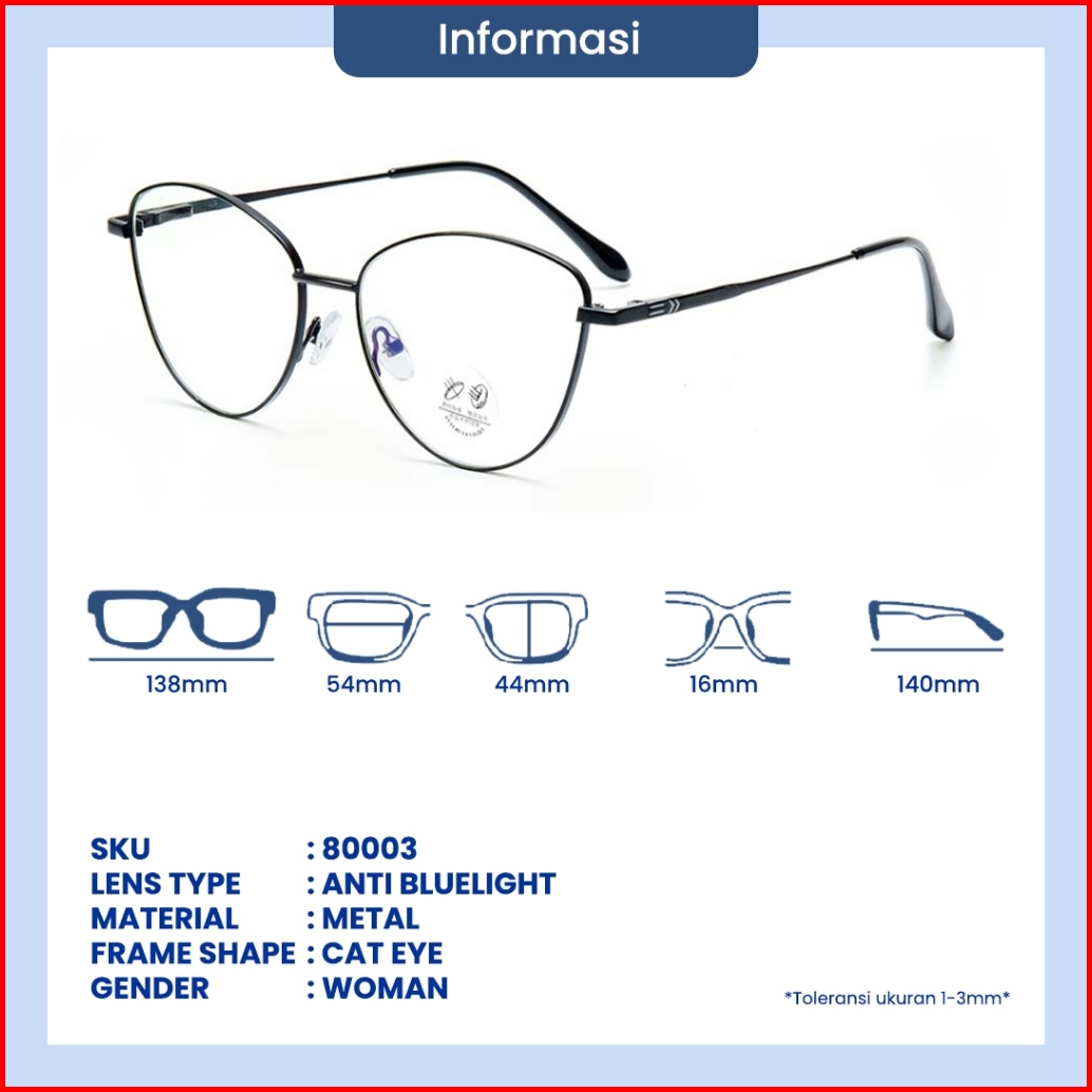 Eyekan Kacamata Cateye Minus Anti Radiasi Blueray Bisa Minus Photocromic Bluecromic Fashion Wanita 80003