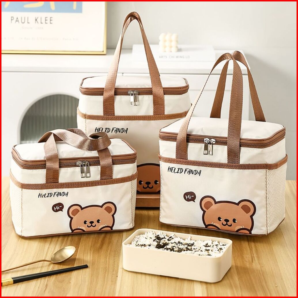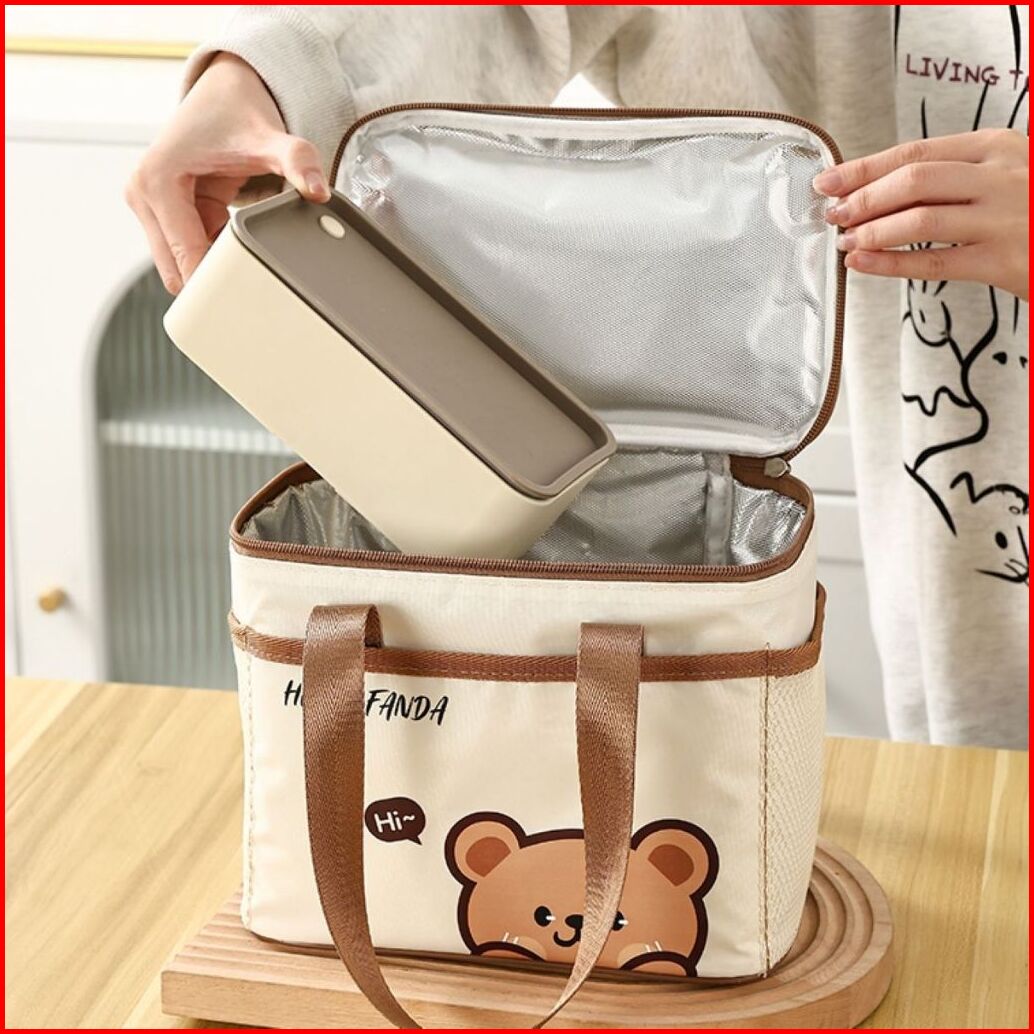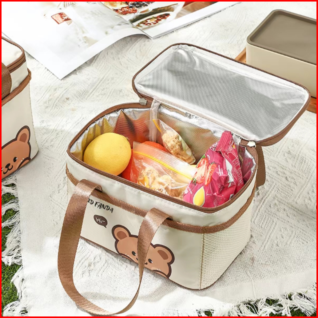 99khome Tas Bekal Anak Tempat Makan Tas Foil Minuman Dingin Tas Piknik Serbaguna Cream H933