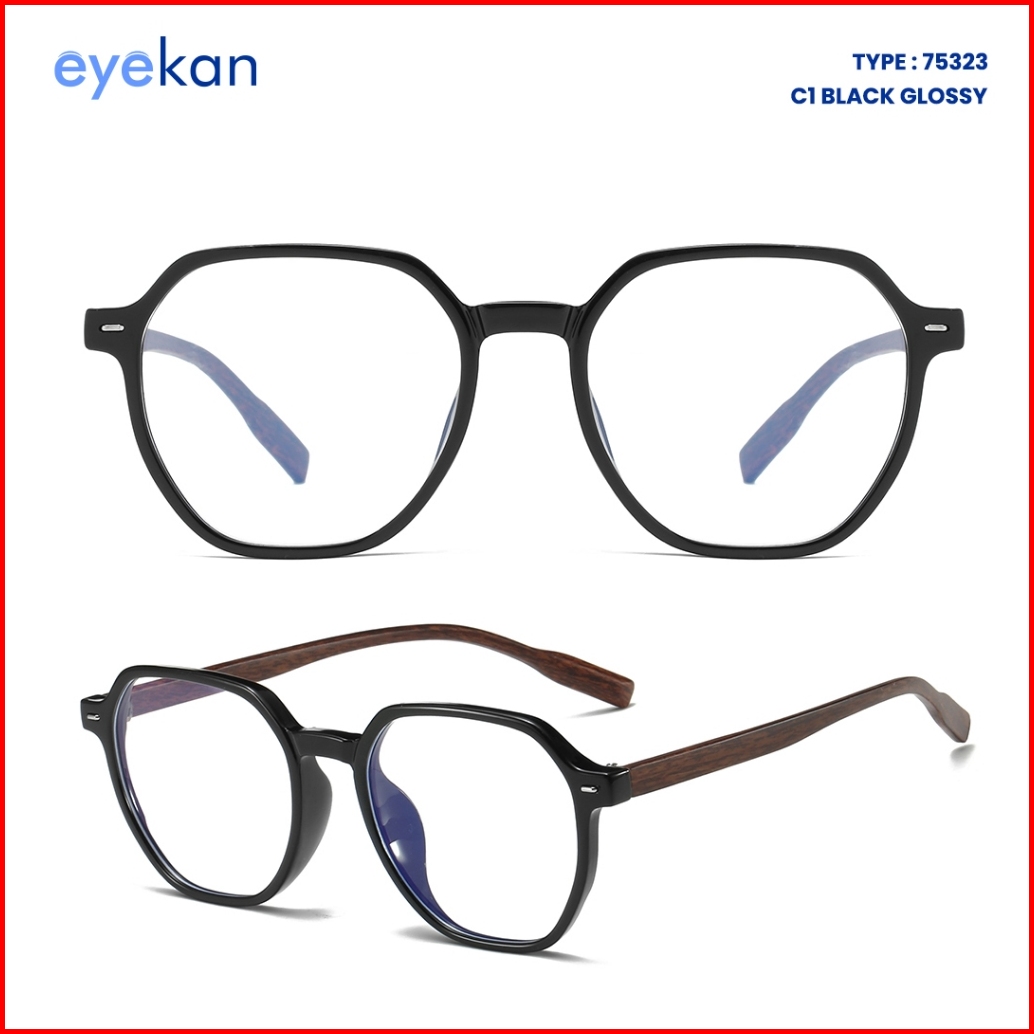 Eyekan Kacamata Anti Radiasi Photocromic Bluecromic Minus Anti Blueray Frame Geometric Bahan Tr Motif Kayu Fashion Pria