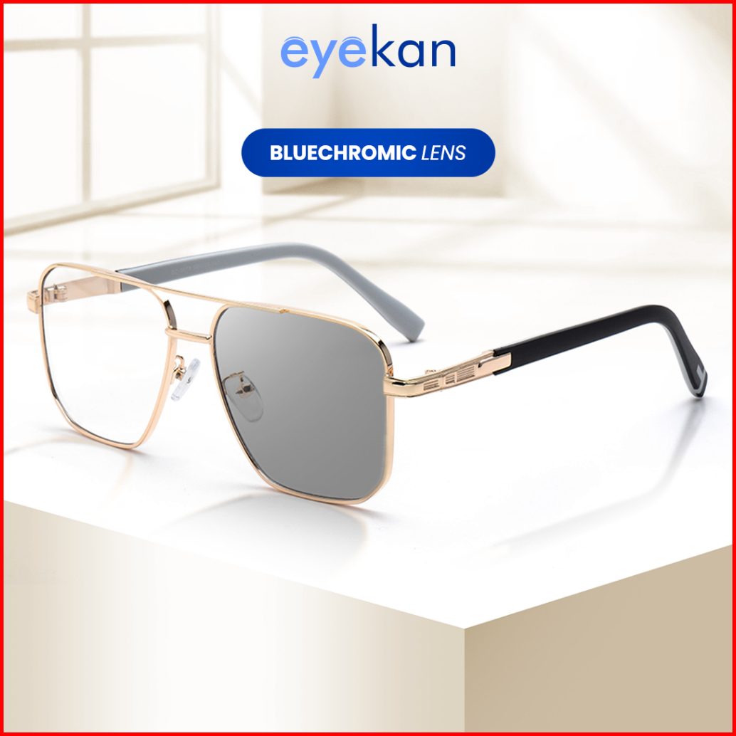Eyekan Kacamata Aviator Photocromic Bluecromic Bisa Minus Fashion Pria Wanita Anti Blueray Kacamata Anti Radiasi Uv 400