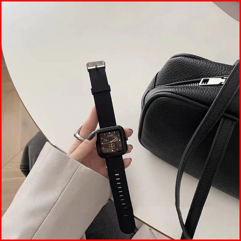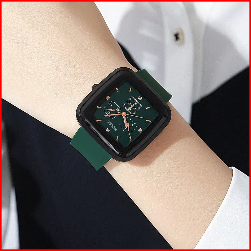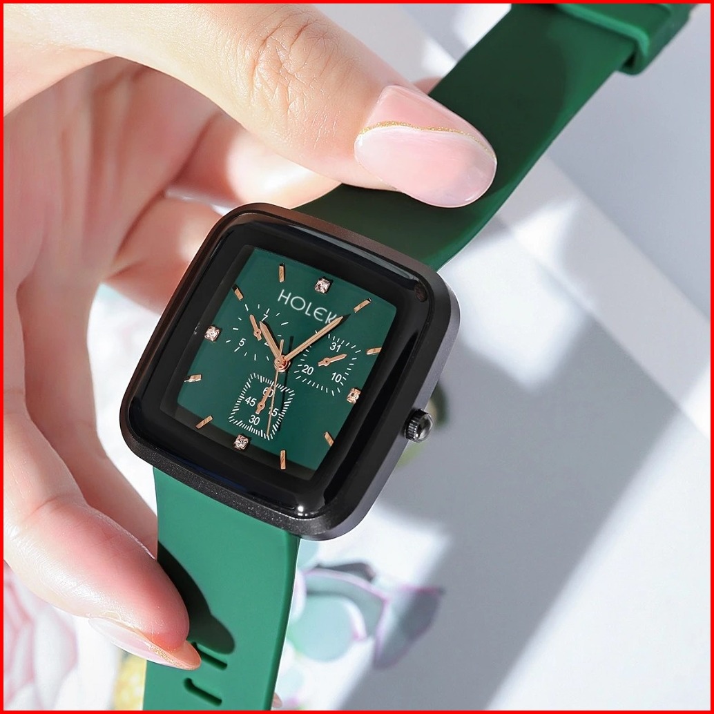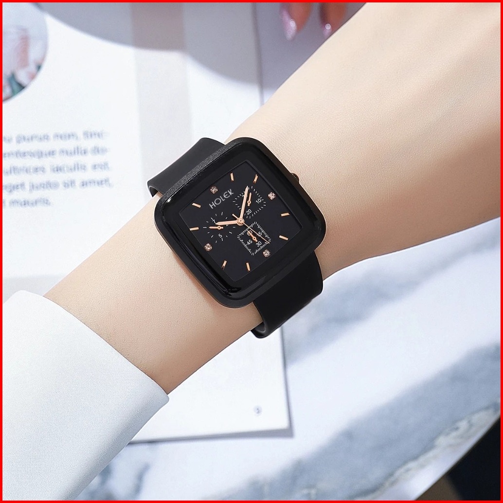 Holek 51065 Jam Tangan Wanita Anti Air Elegan Tali Silikon Quartz Dial Persegi Jam Tangan Cewek Pelajar