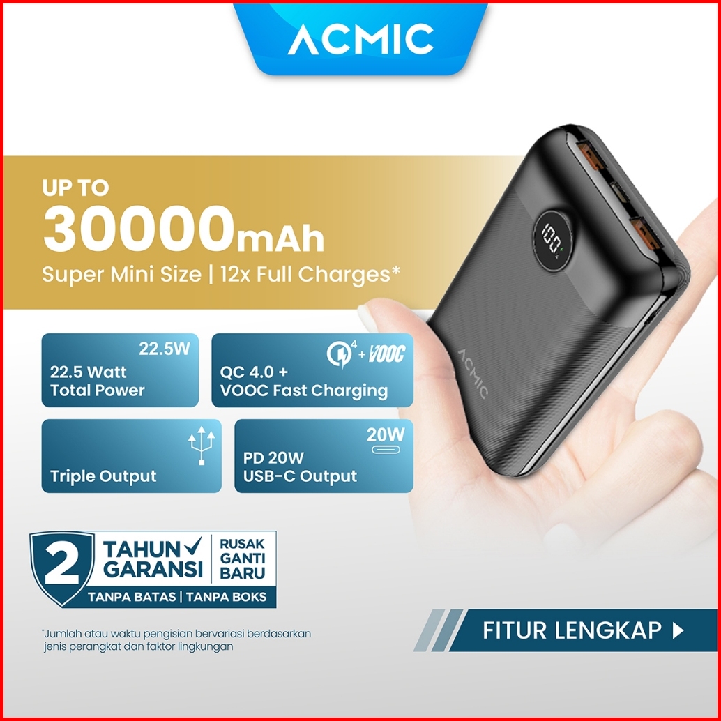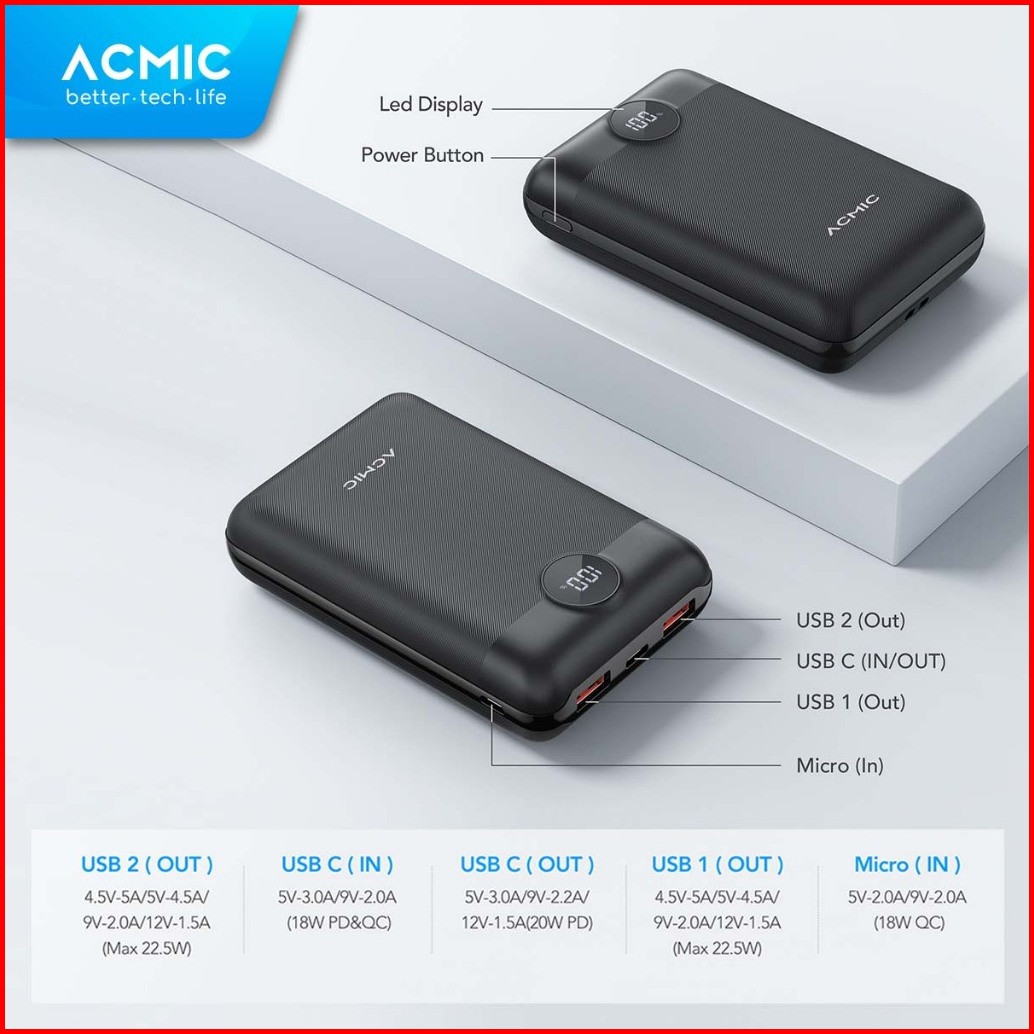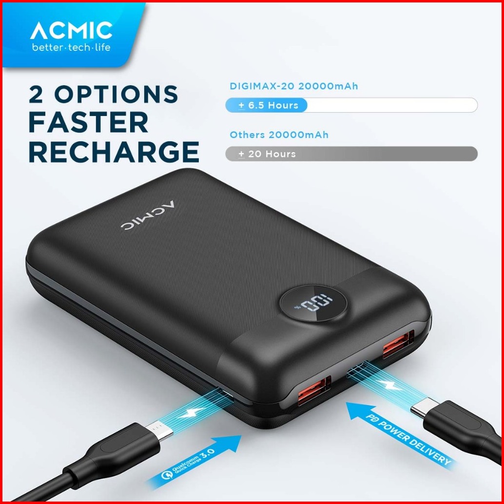 Acmic Digimax 20000mah Powerbank Mini 22.5w Fast Charging Type C Black