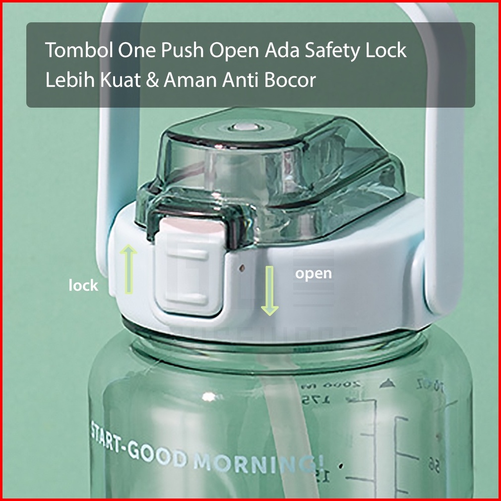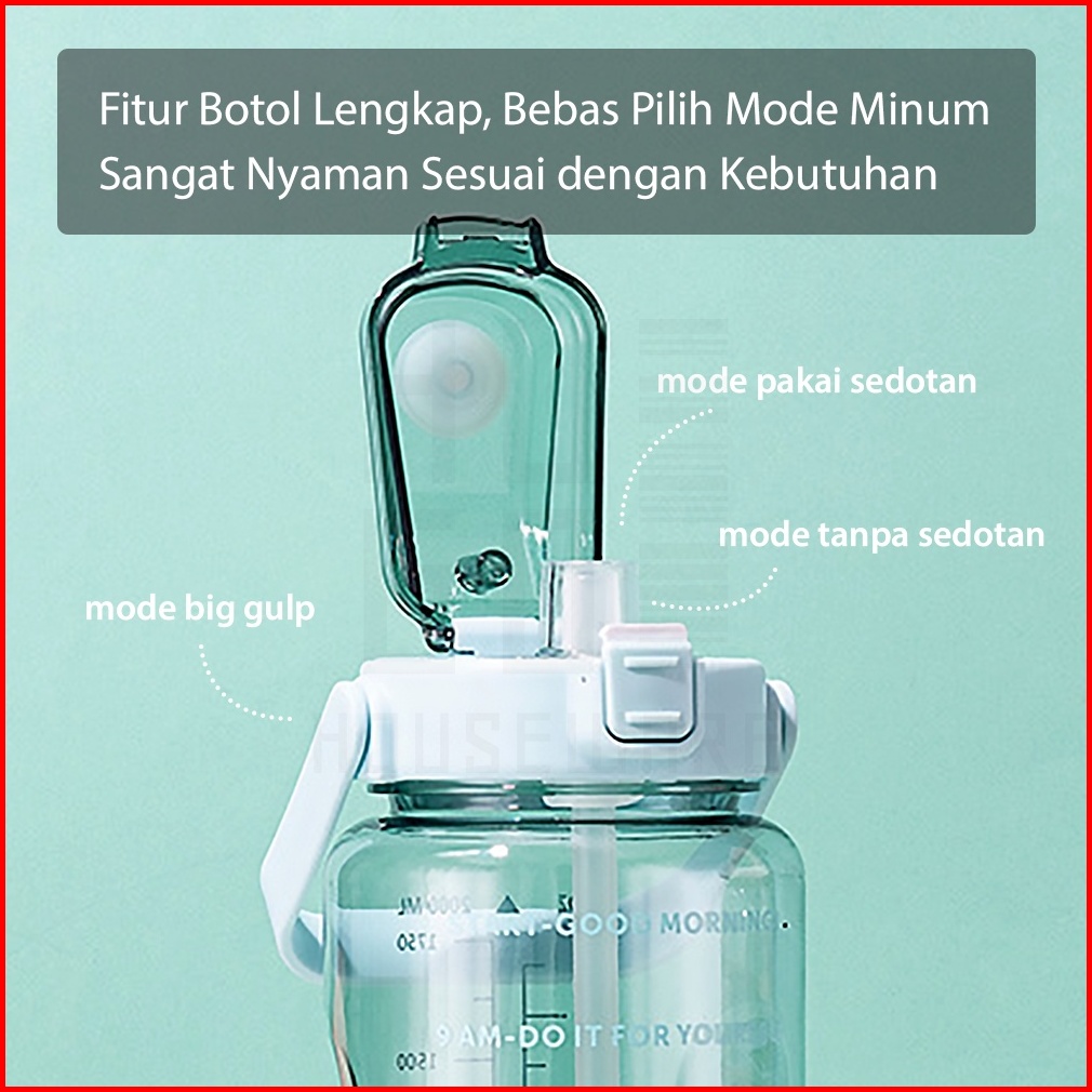 Botol Minum Motivasi 2 Liter Bening Jumbo Premium Quality Gratis Stiker Hugo