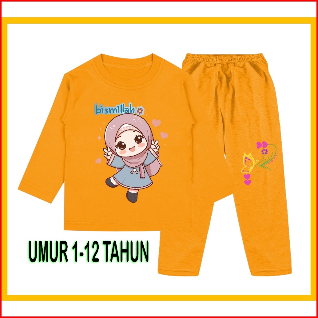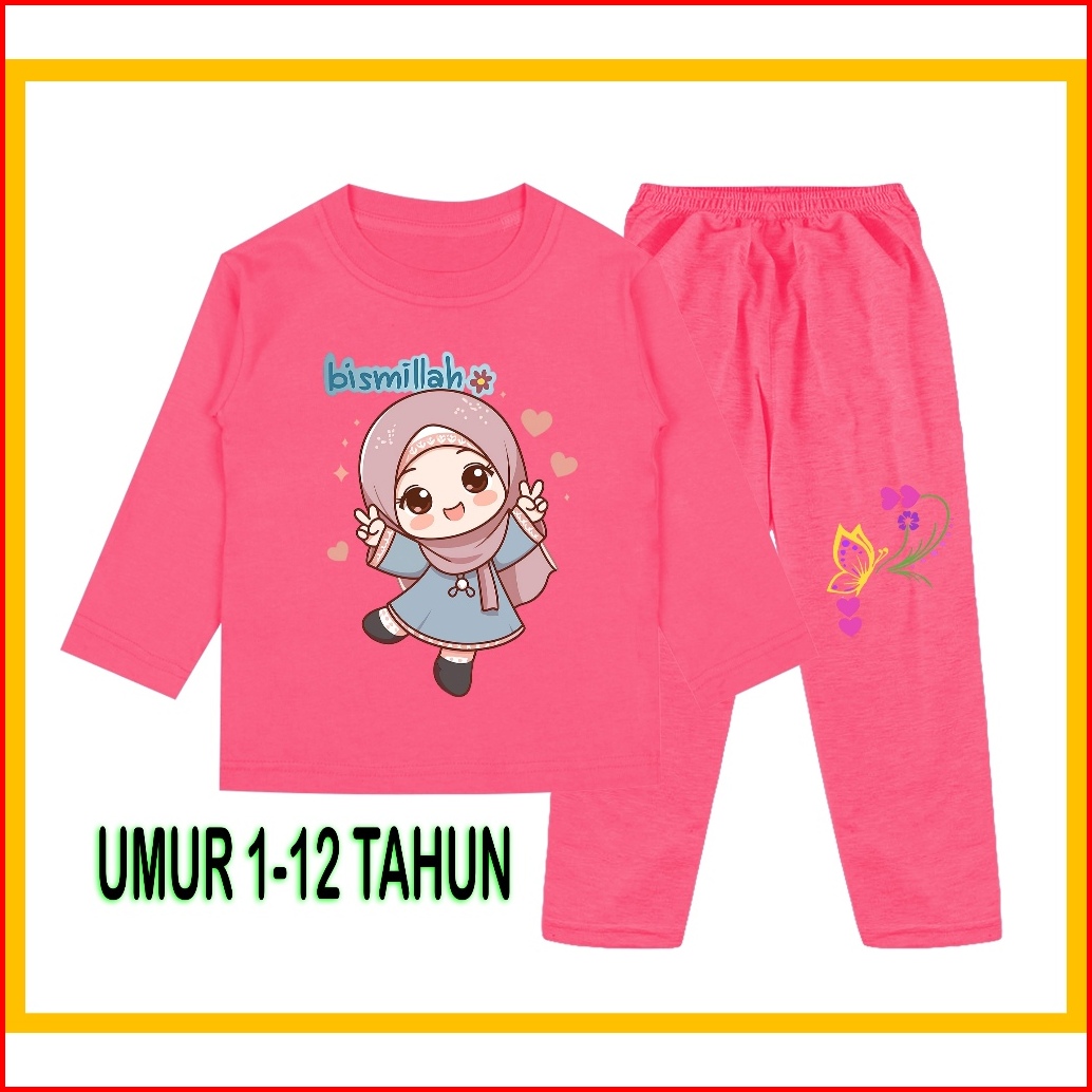 Baju Setelan Piyama Anak Soleh Perempuan Lengan Panjang Celana Panjang 1 - 10tahun