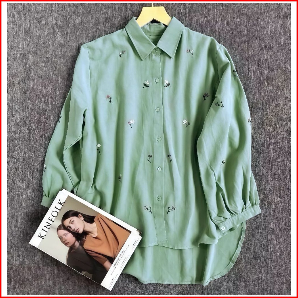 Kemeja Luna Bordir Motif Bunga - Atasan Wanita Blouse Linen
