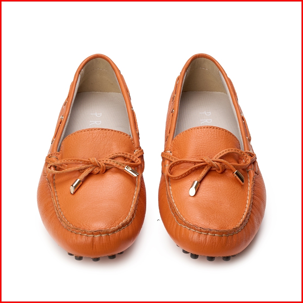 Prabu - Sepatu Kulit Mocassin Wanita Fira Orange Milling