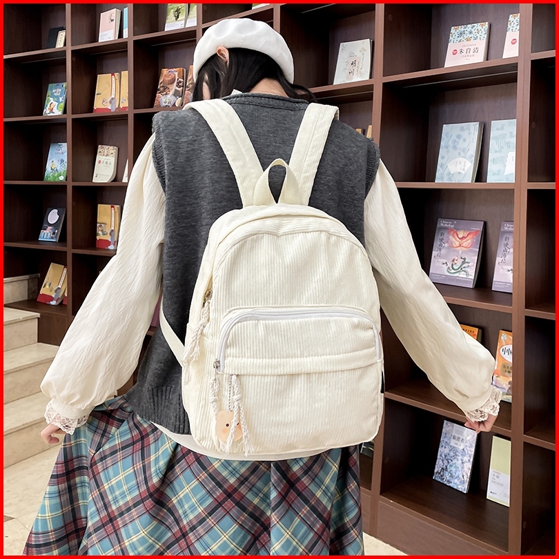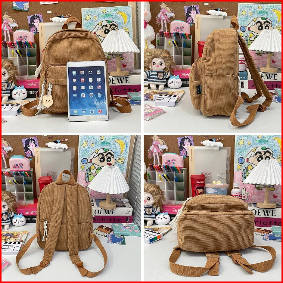 Mismi Tenley Bag Tas Ransel Wanita Korduroi Korean Style Medium Backpack Perempuan Trendy - 43t