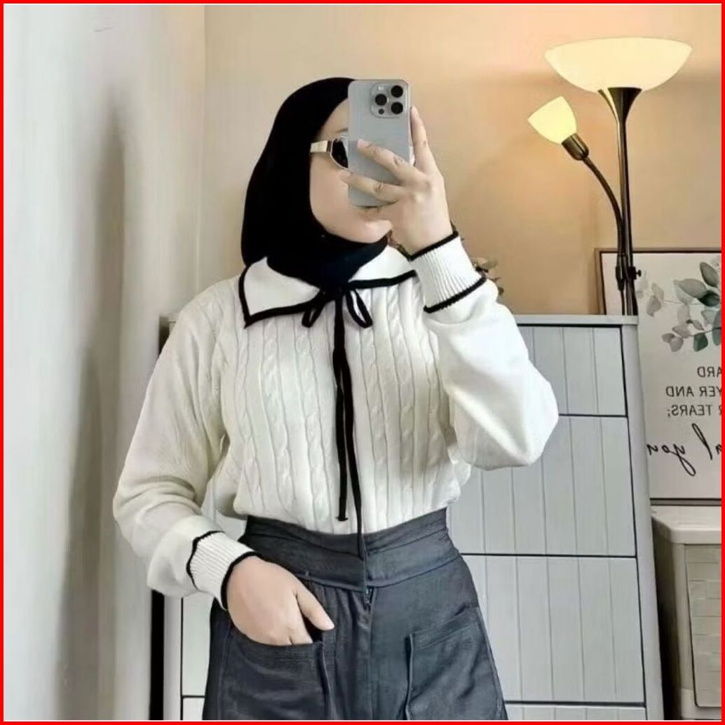 Kirana Blouse Rajut Cable Motif Pita Minimalis L-xl