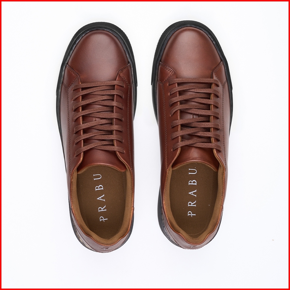 Prabu - Candi Brown Black Sepatu Kulit Sneakers Pria Cokelat Hitam