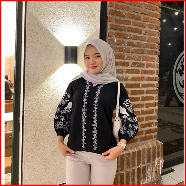 Hdstyle - Atasan Blouse Merlita Bordir Kerah Sanghai V Atasan Blouse Bordir Wanita