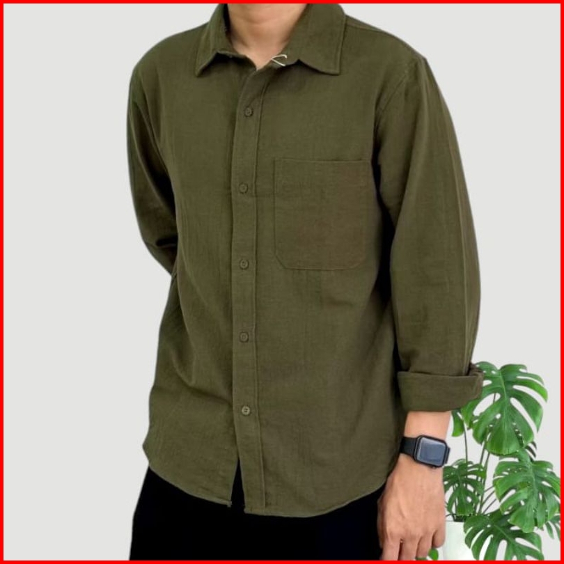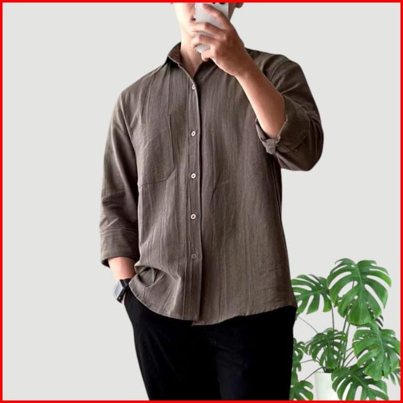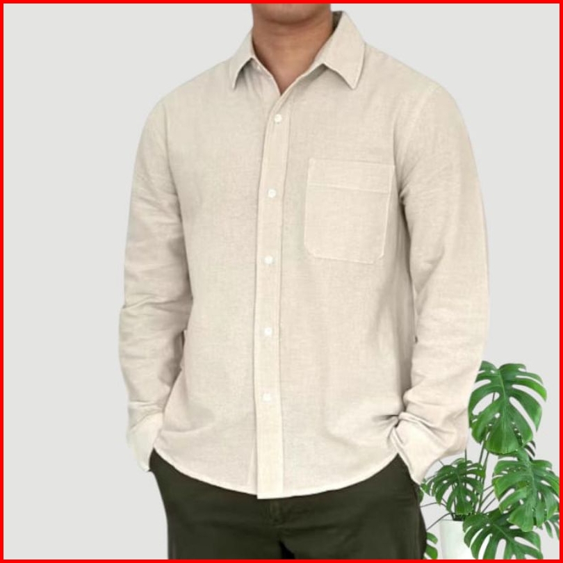 Reinaclub Long Sleeve Linen Shirt Kemeja Polos Linen Pria Lengan Panjang 91