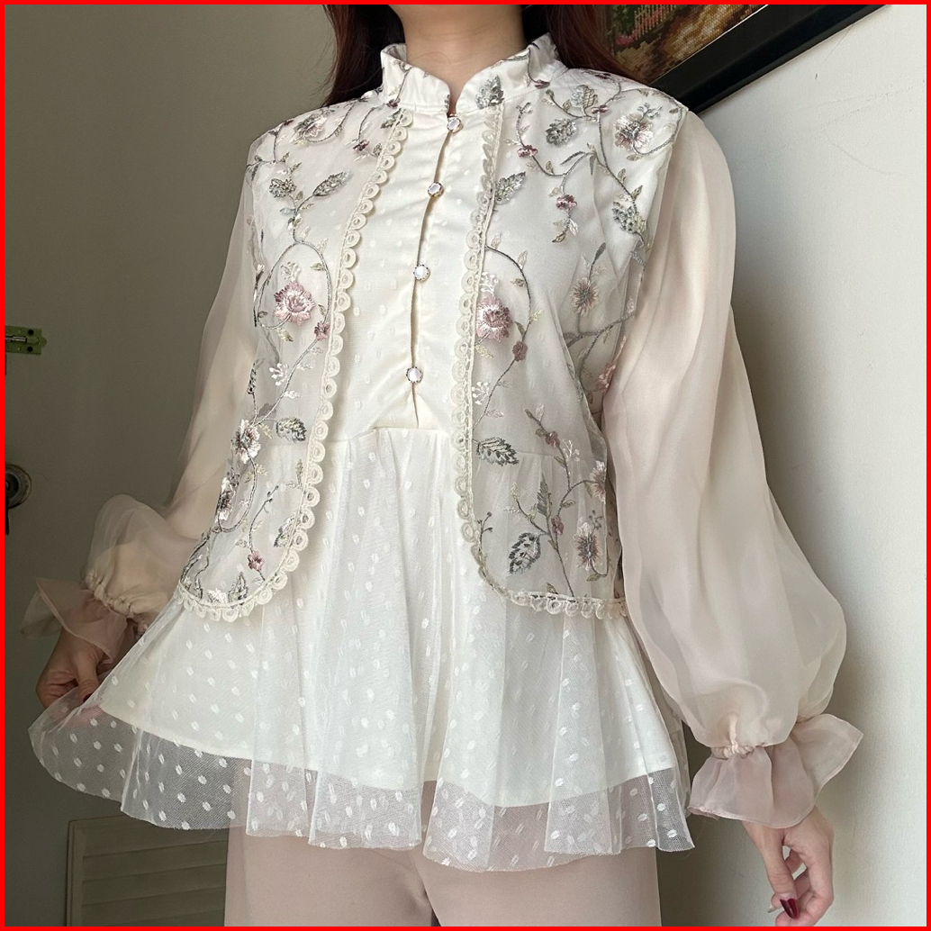 Zaina Bkk Top Atasan Blouse Kemeja Wanita Tulle Bordir Viral Mewah Cantik Kerja Korean Style By Biel The Label