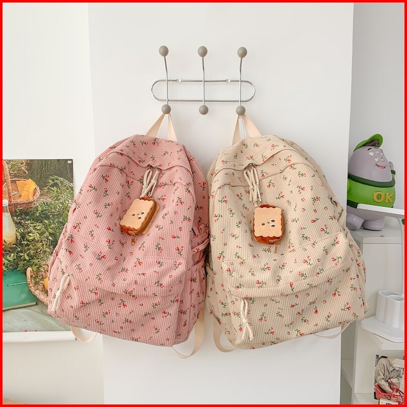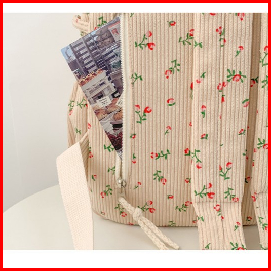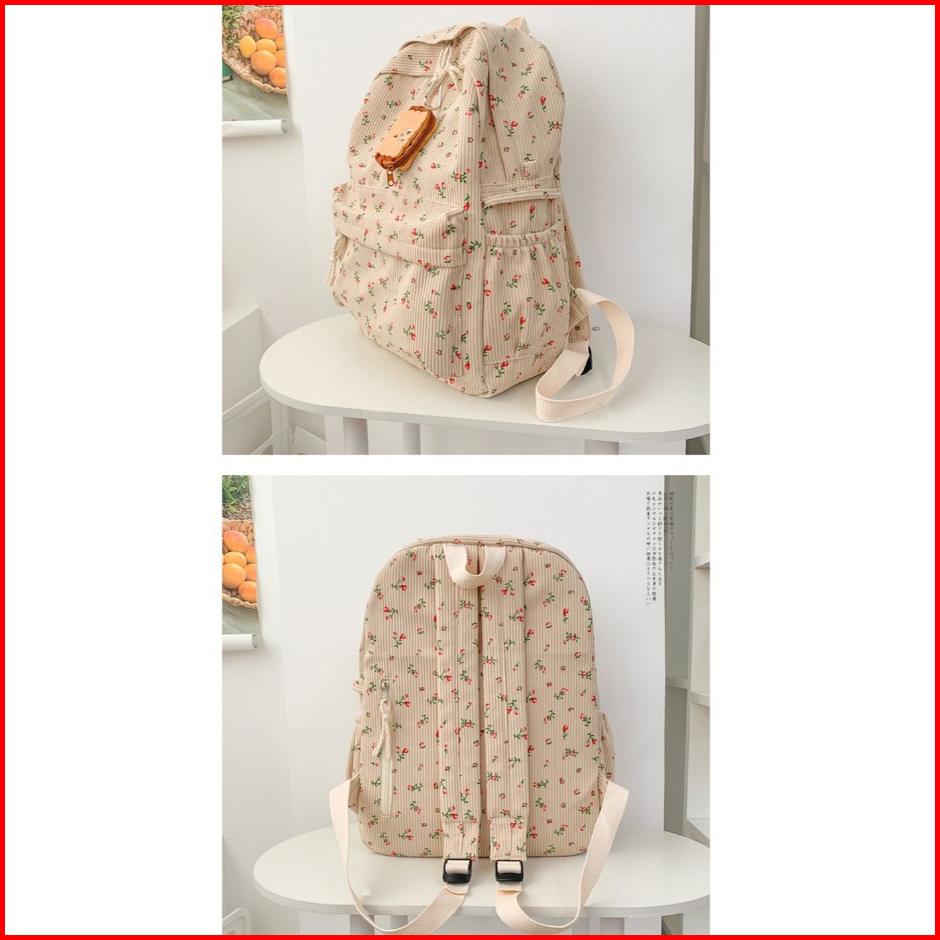 Mismi Jasmine Bag Tas Ransel Wanita Korduroi Korean Flower School Backpack Perempuan Stylish - 47j