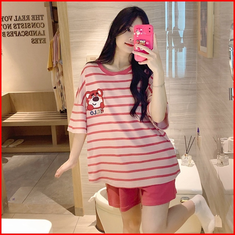 Ggs Piyama Baju Tidur Set Wanita Remaja Dewasa L To 5xl Setelan Kaos Lengan Pendek Celana Pendek Woman Pajamas Korean Cu