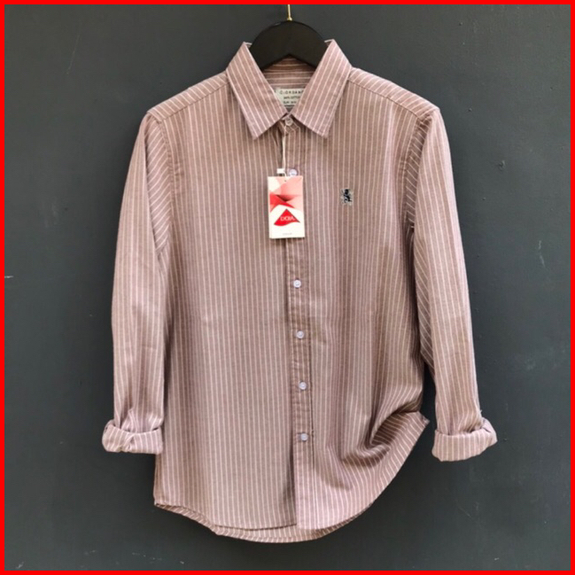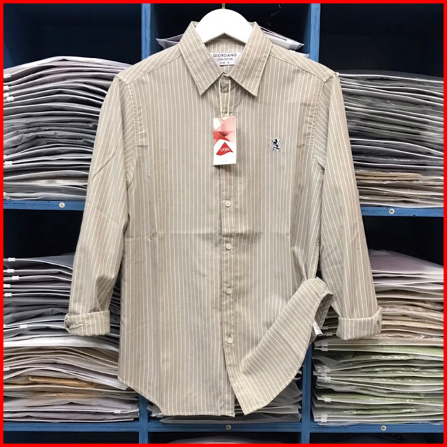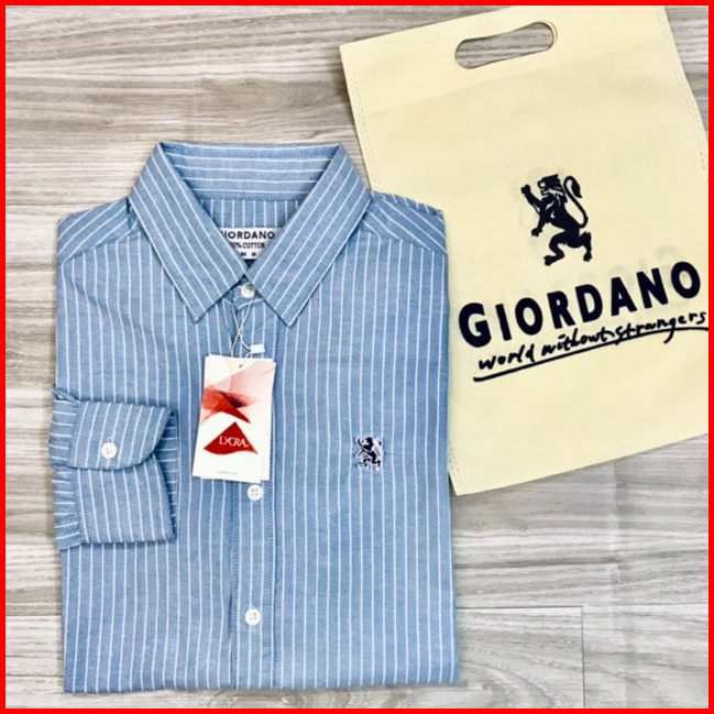 Giordano 3d Kemeja Garis Salur Oxford Kemeja Pria Lengan Panjang Formal