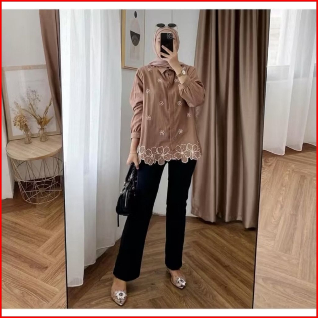 Kemeja Blouse Bordir Bahan Linen Terbaru Kekinian Stefi