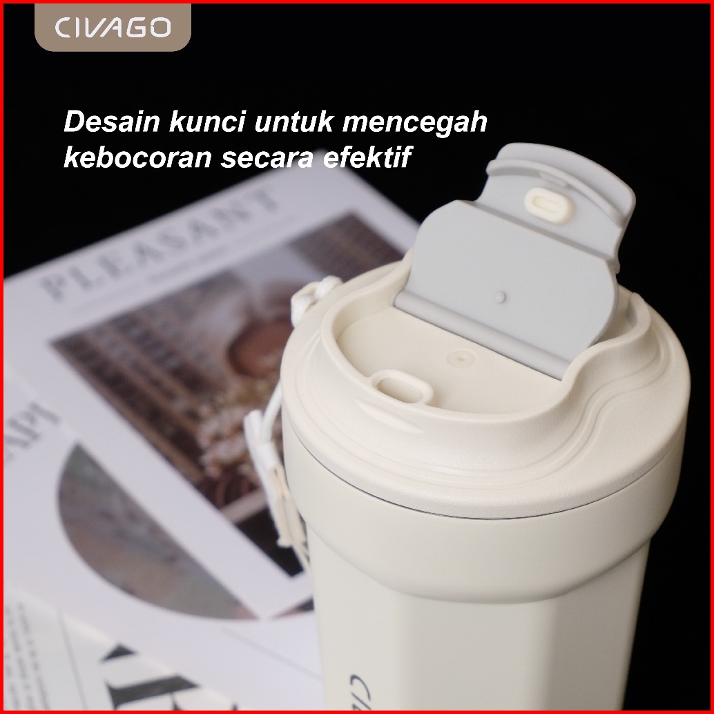 Civago13oz 385mlmug Kopi Stainless Steel Dengan Lapisan Keramik Dan Tutup Termos Vakum Untuk Minuman Panas Dan Dingin