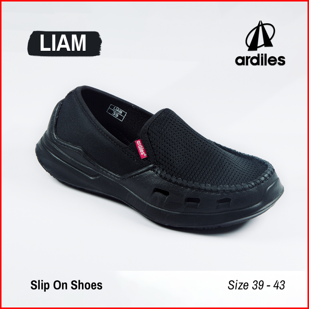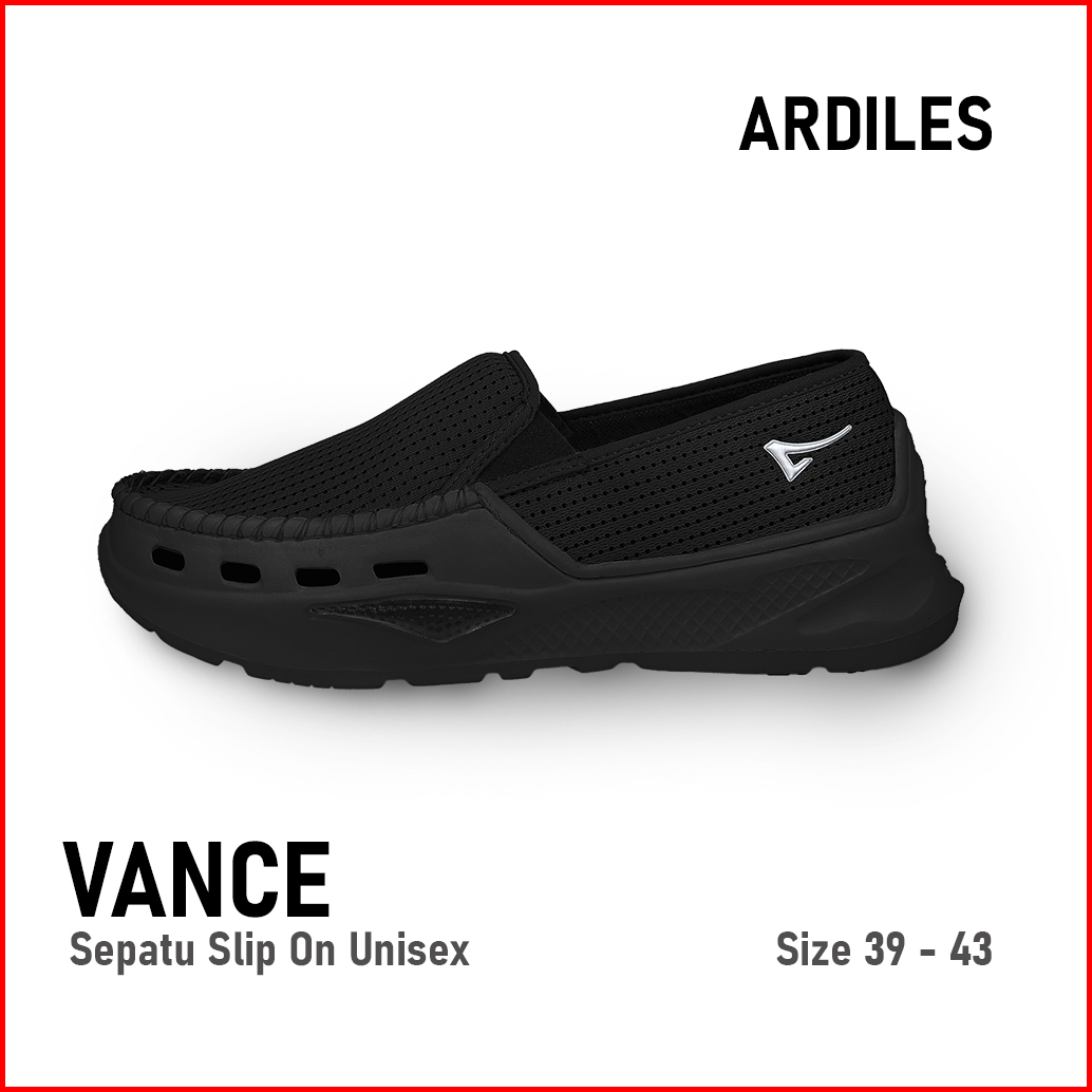 Sepatu Original Ardiles - Slip On Pria Full Black Kerja Sekolah Ringan Bahan Eva Phylon Premium