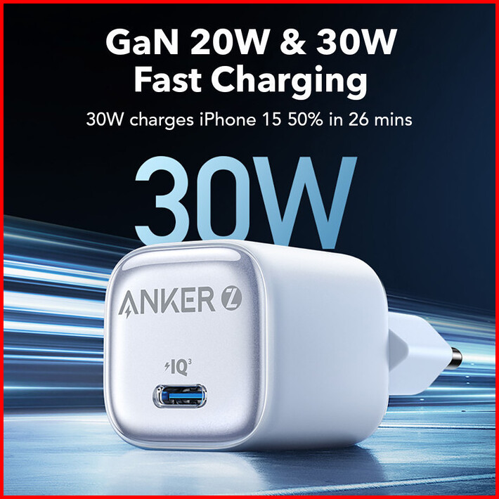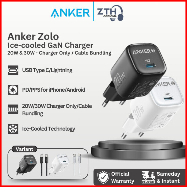 Anker Zolo Gan 20w 30w Adaptor Kepala Charger For Iphone 15 Samsung Type C Pd Pps Fast Charging A2698 A2699 B2698 B2699