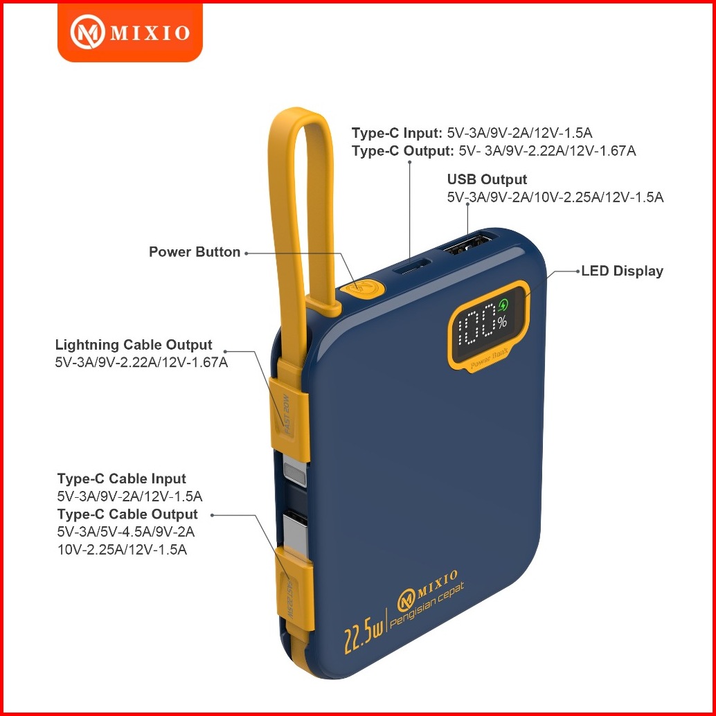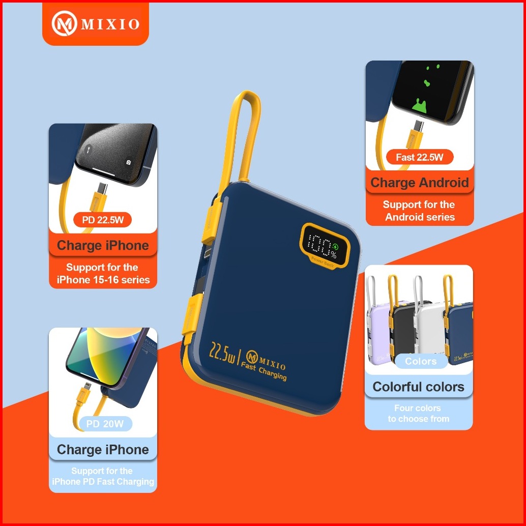 Mixio Mp-08 5000mah Powerbank Mini 20w With Kabel Fast Charging Lightning Type C For Iphone Android