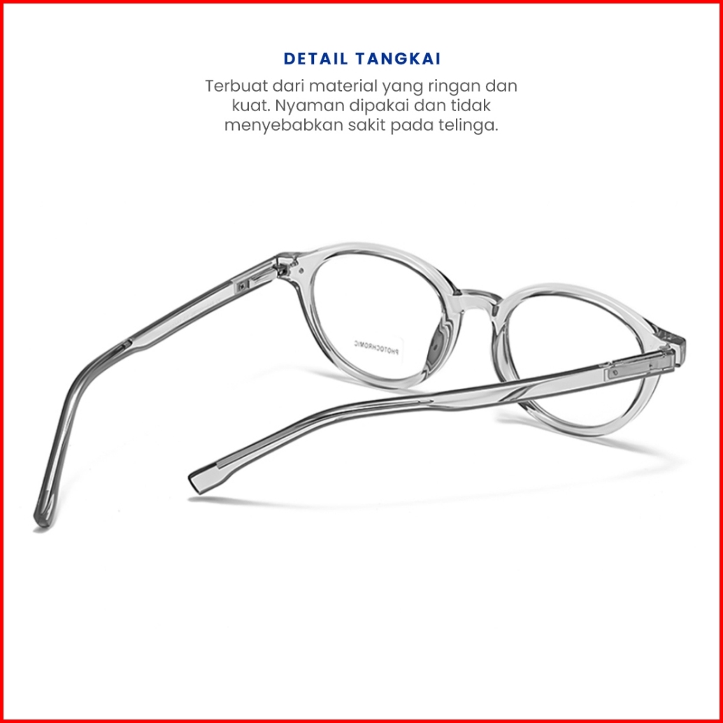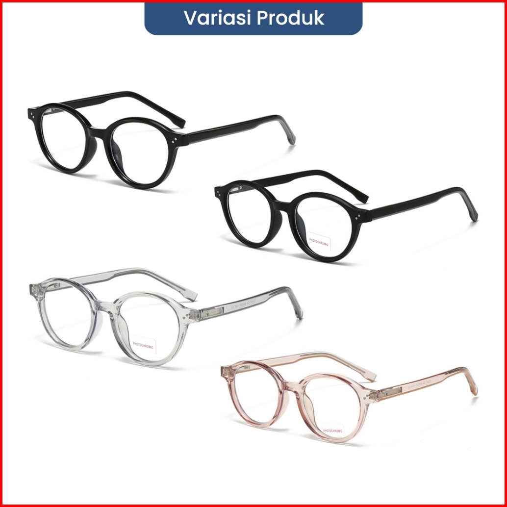 Eyekan Kacamata Minus Photocromic Blueray Anti Uv Bahan Tr90 Ringan Bulat Fashion Pria Wanita 10347