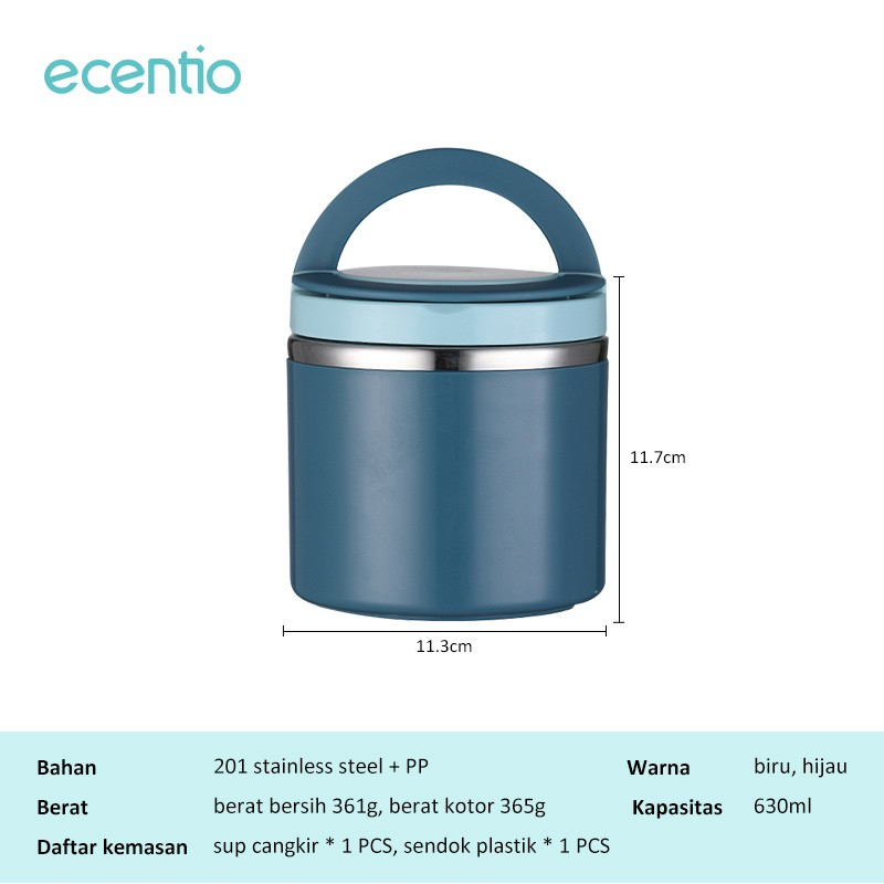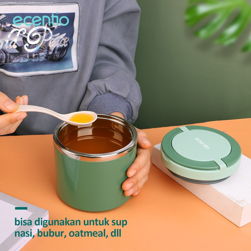 Little Mall ECENTIO CANGKIR SUP 630 ML STAINLESS TAHAN PANAS DINGIN FREE SENDOK TERMOS SUP ANTI TUMPAH KAPASITAS BESAR MUG SUP STAINLESS PREMIUM
