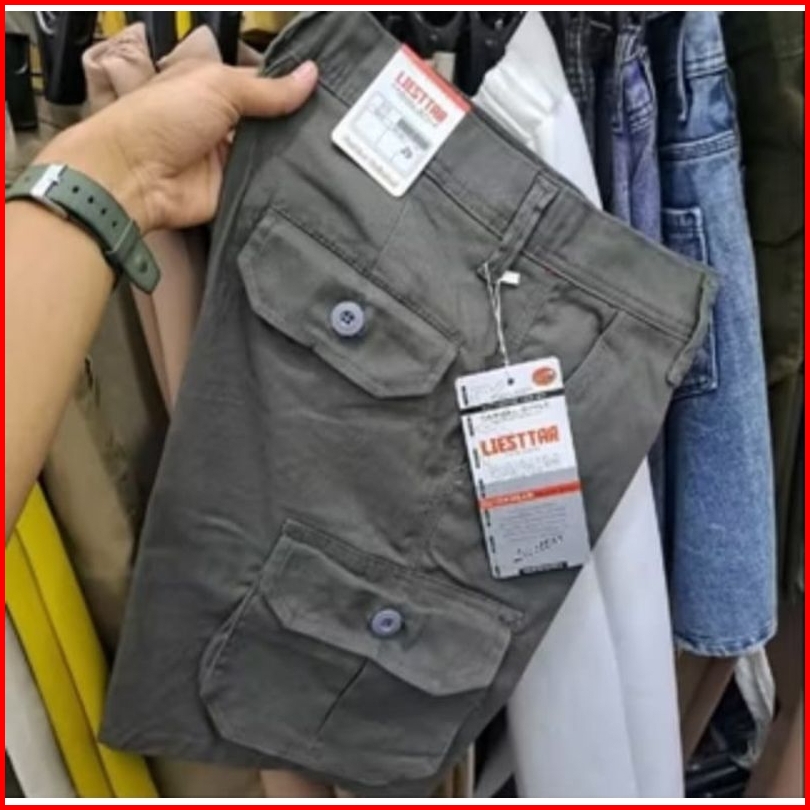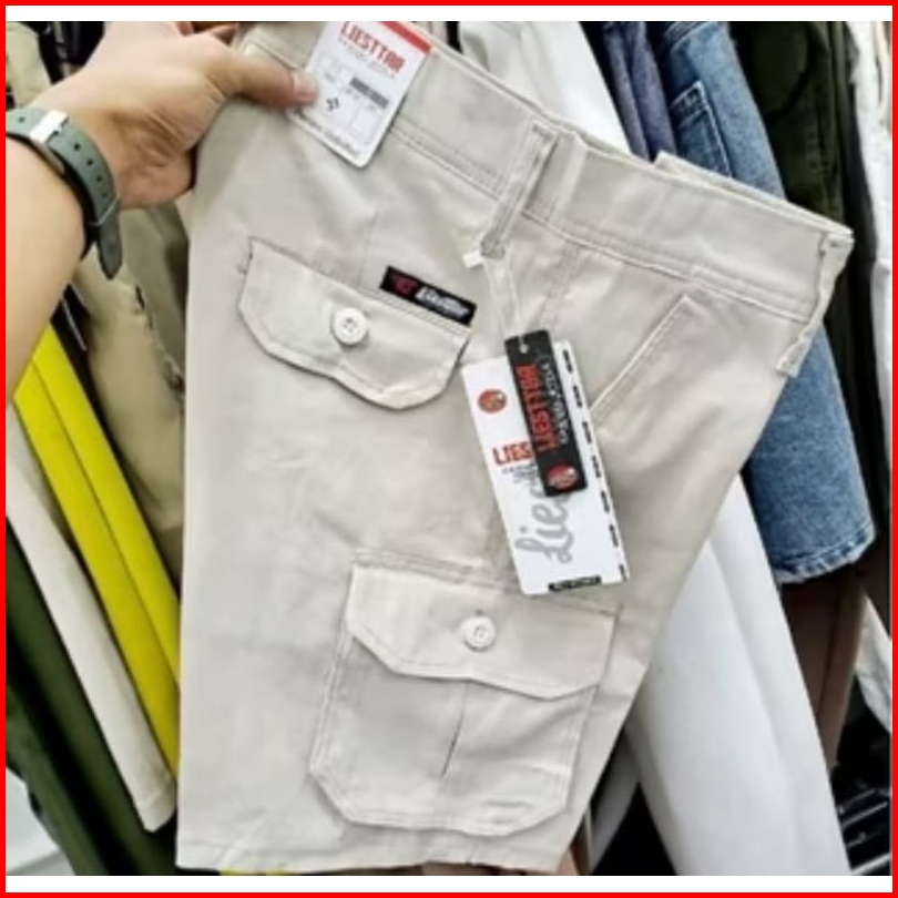 Celana Pendek Pria Cargo Katun Twill Stretch