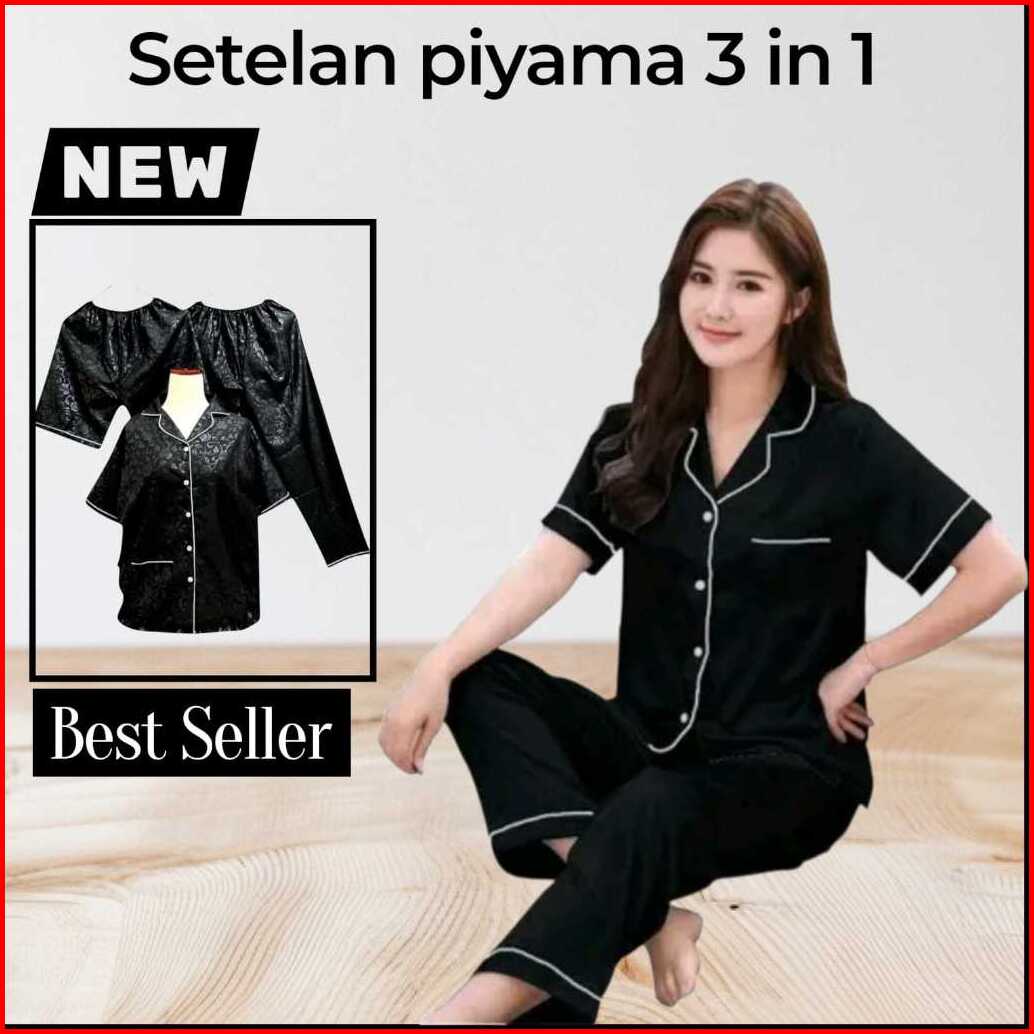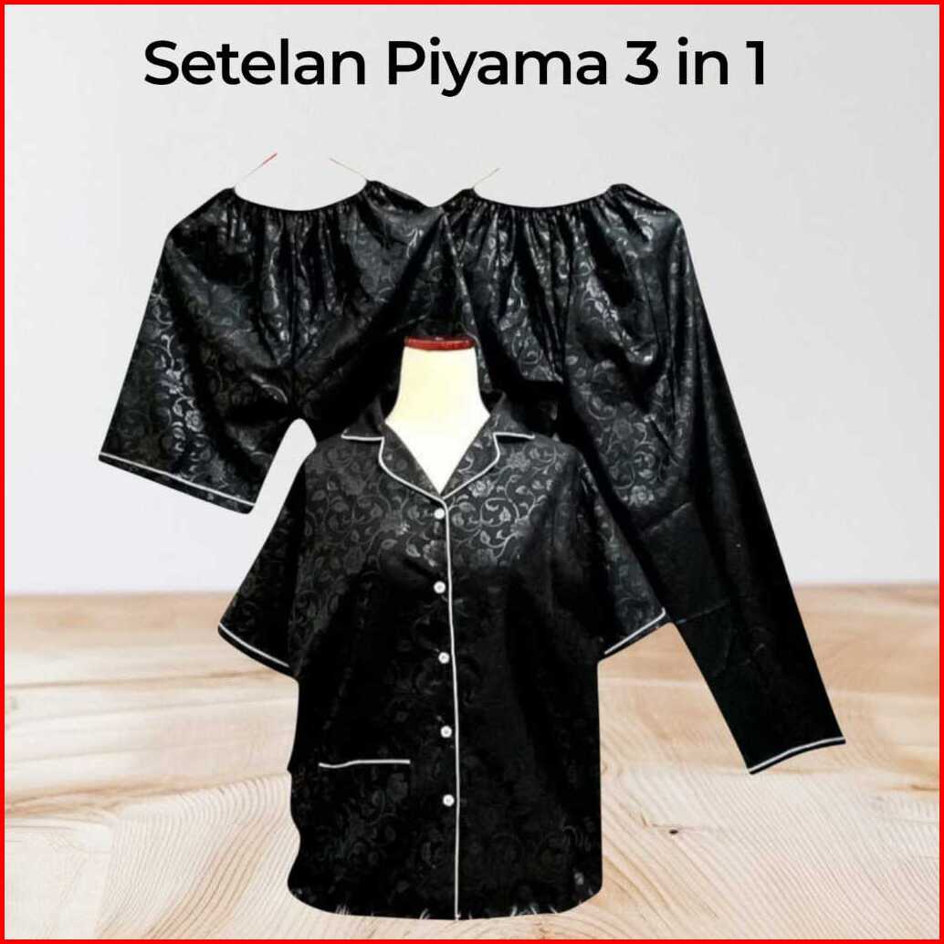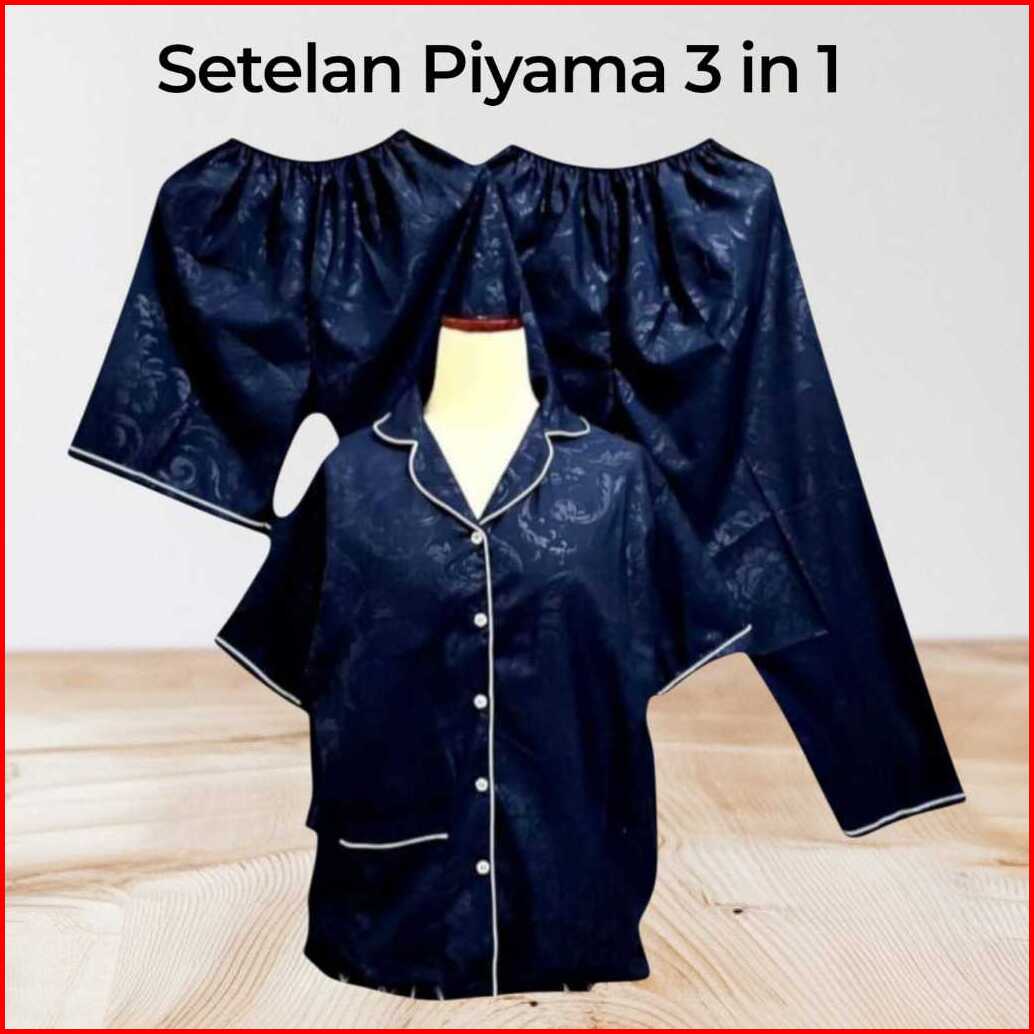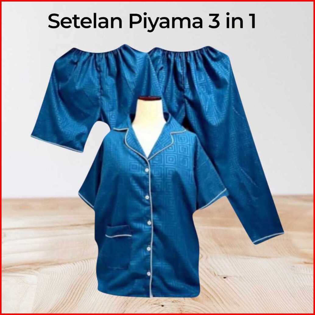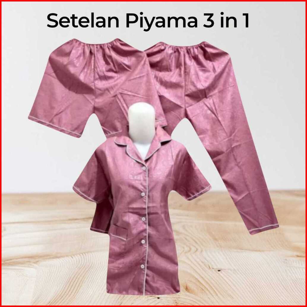 Piyama 3 In 1 Baju Tidur Wanita Dewasa - Piyama 3 In 1 Embos Model Terbaru