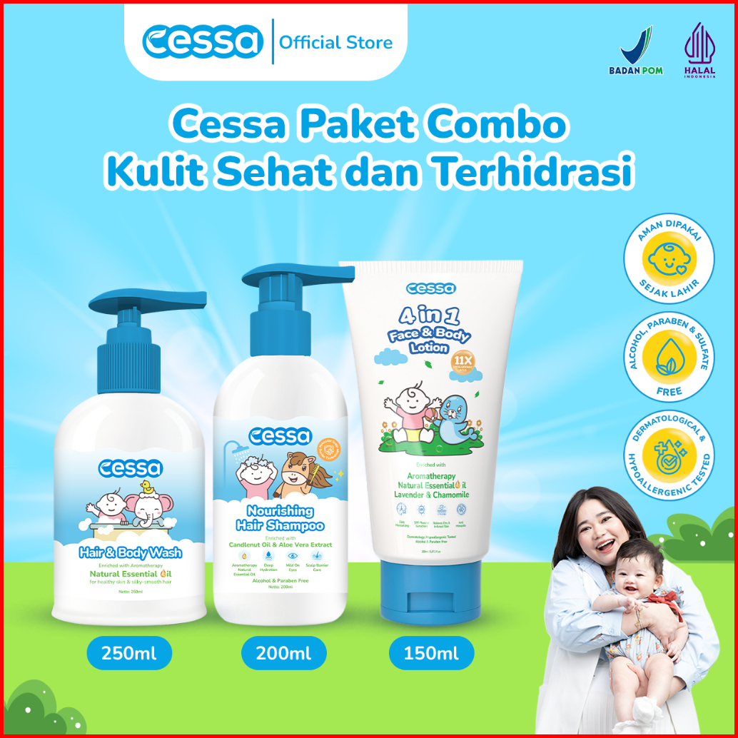 Cessa Paket Combo Kulit Sehat Dan Terhidrasi Nourishing Hair Shampoo 200ml Hair Body Wash 250ml 4 In 1 Face Body Lotion