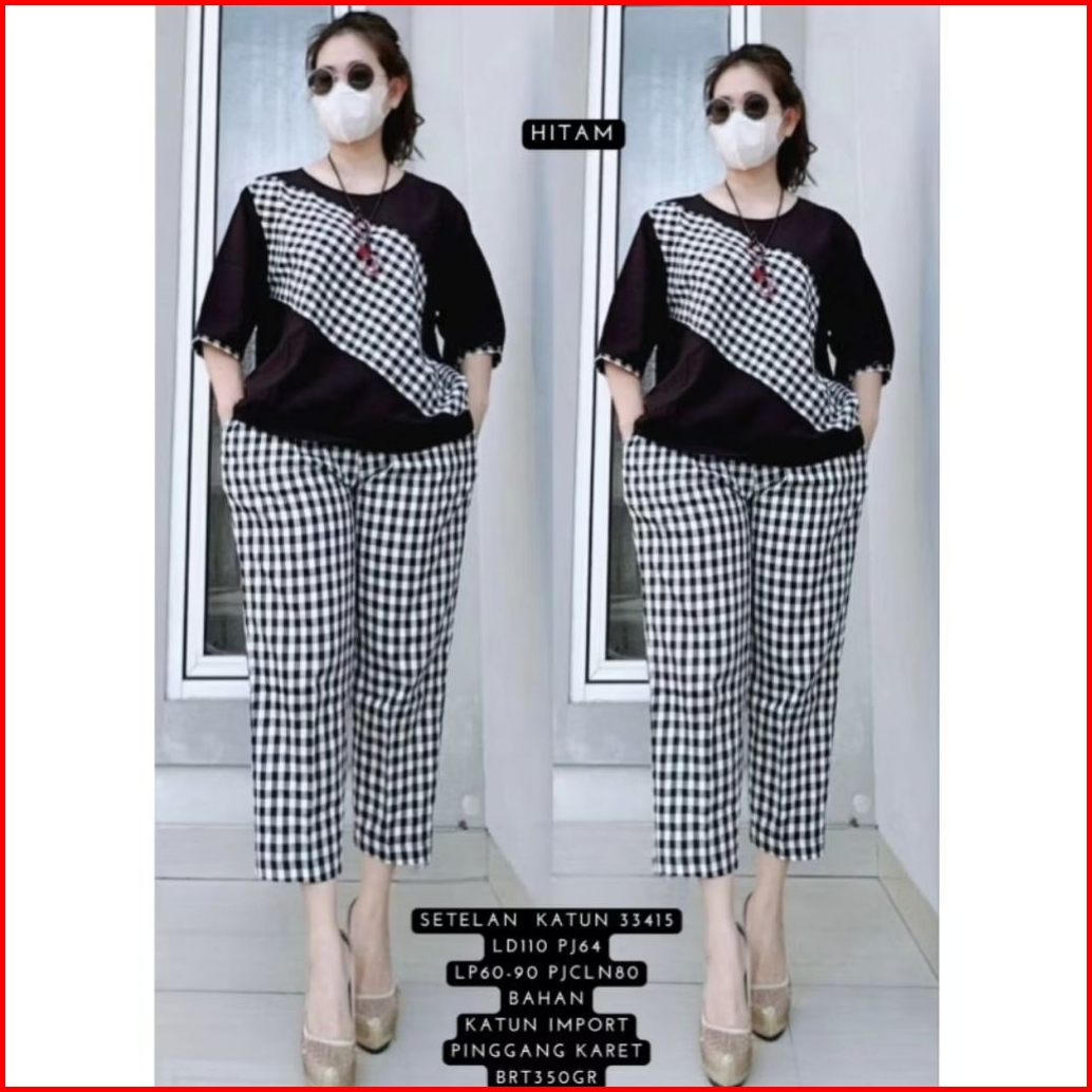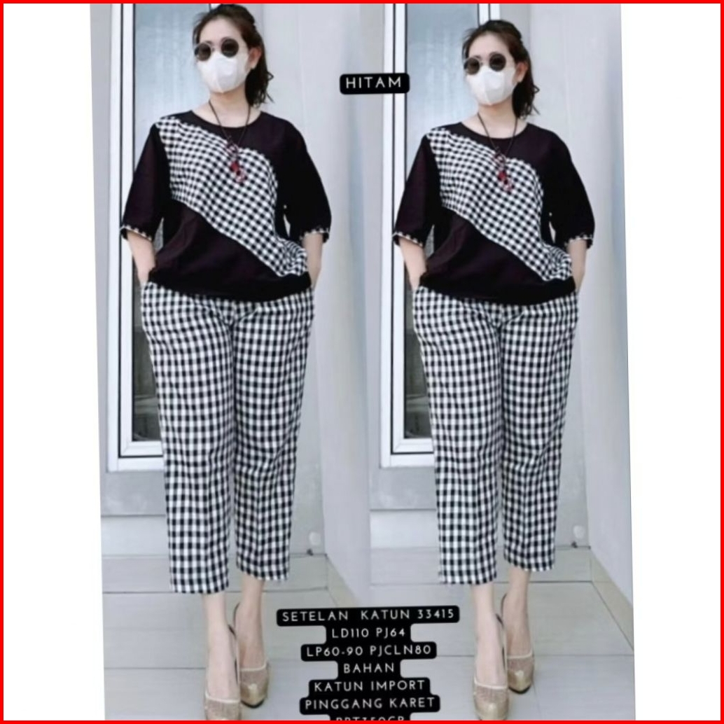 Setelan Wanita Merah Putih Terbaru Set Wanita Bahan Katun Kotak Mix Crinkel Airflow Yaman Di Pakai
