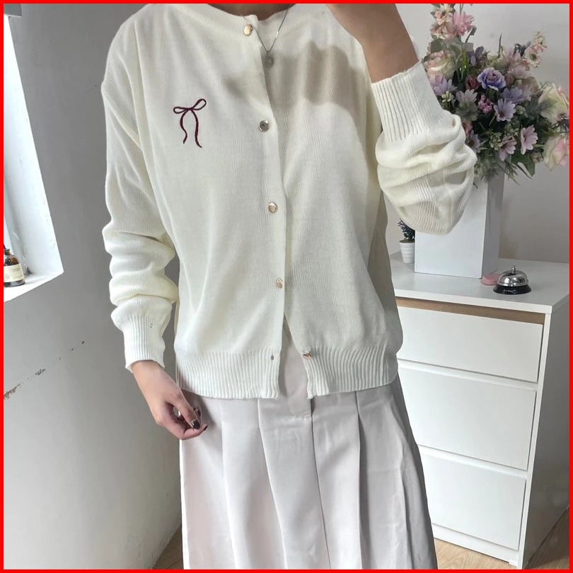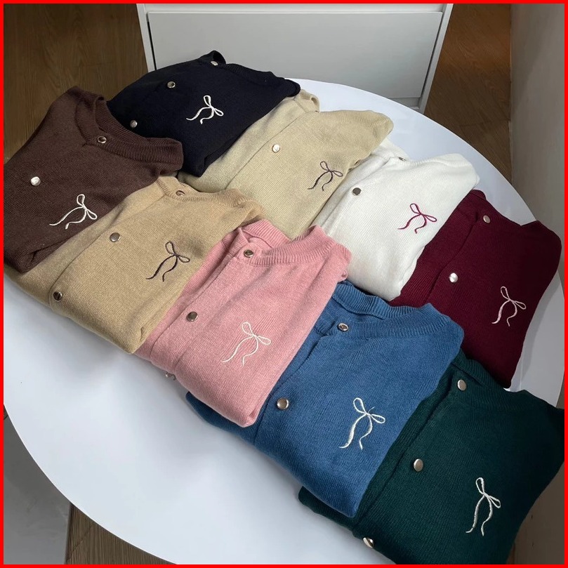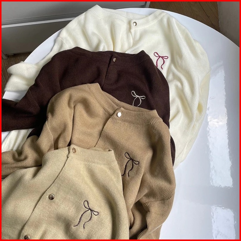 Cardigan Rajut Naomi Pita Korean Style - Cardigan Pita Polos - Cardigan Ribbon Coquette