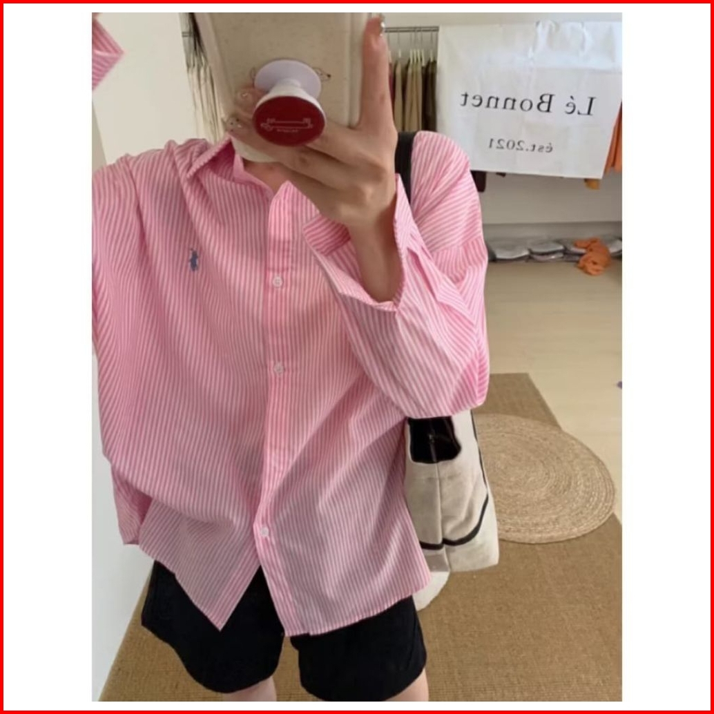 Atasan Kemeja Wanita Strip Elengan Panjang Kemeja Kerja Wanita Shirt Long Sleev