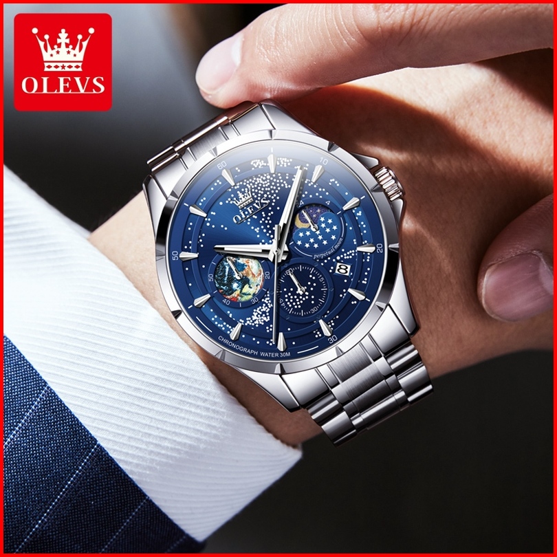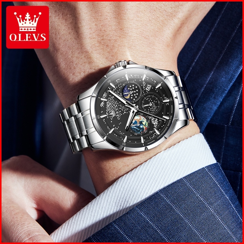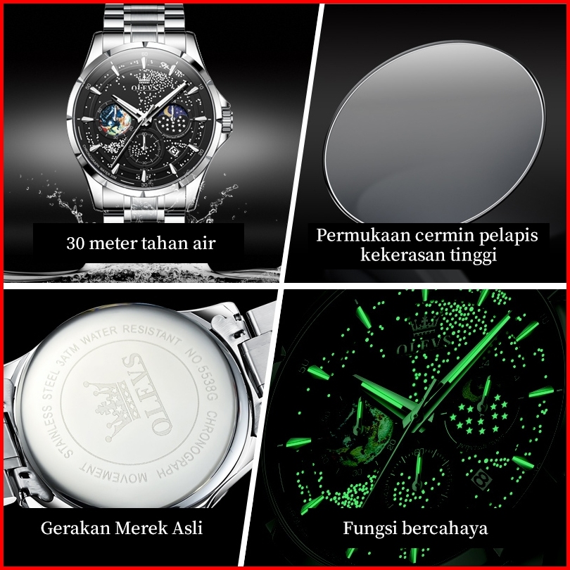 Olevs Jam Tangan Pria Anti Air Original Stainless Steel Terbaru 2025 Keren Luminous Bisnis Men Watch 5538