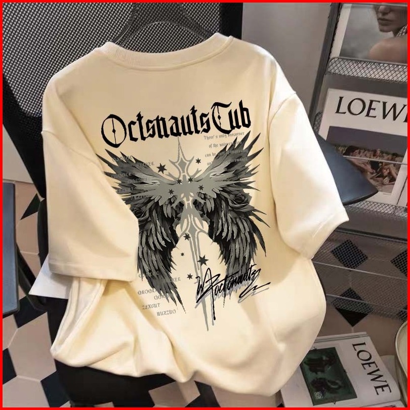 Marlacoeur Pola Sablon Sayap Malaikat Retro Amerika Kaos Cowok Distro Original 100 Baju Oversize Pria Kaos Pria Premium