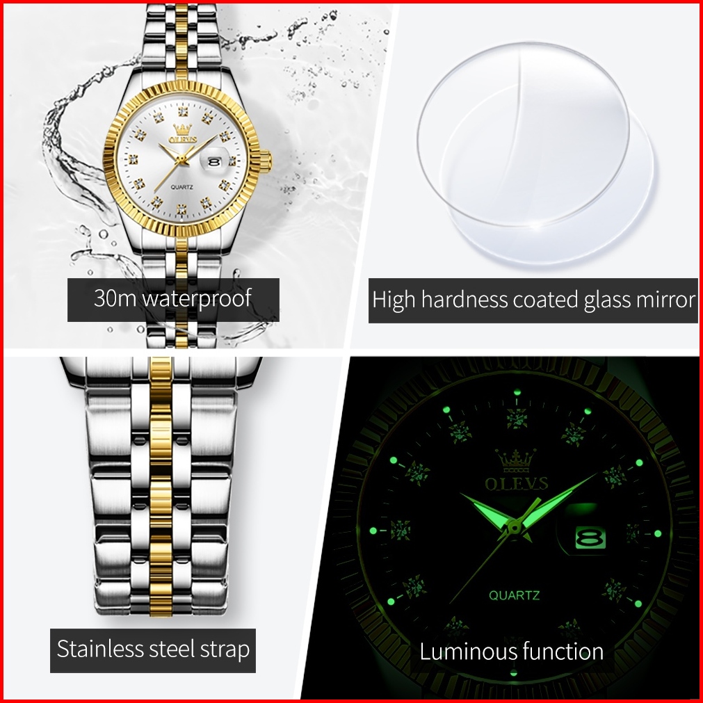 Olevs Jam Tangan Wanita Anti Air Original Stainless Steel Kecil Korea Analog Tahan Air Putih Hitam Women Watch Model 552