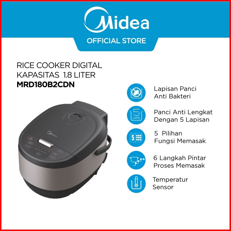 Gratis Fry Pan Midea Digital Rice Cooker Low Watt 1.8l Mrd180b2cdn Dengan White Jade Antibacterial Crystal Diamond Ceram