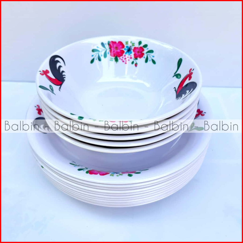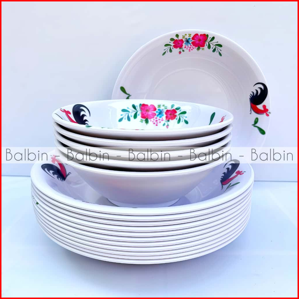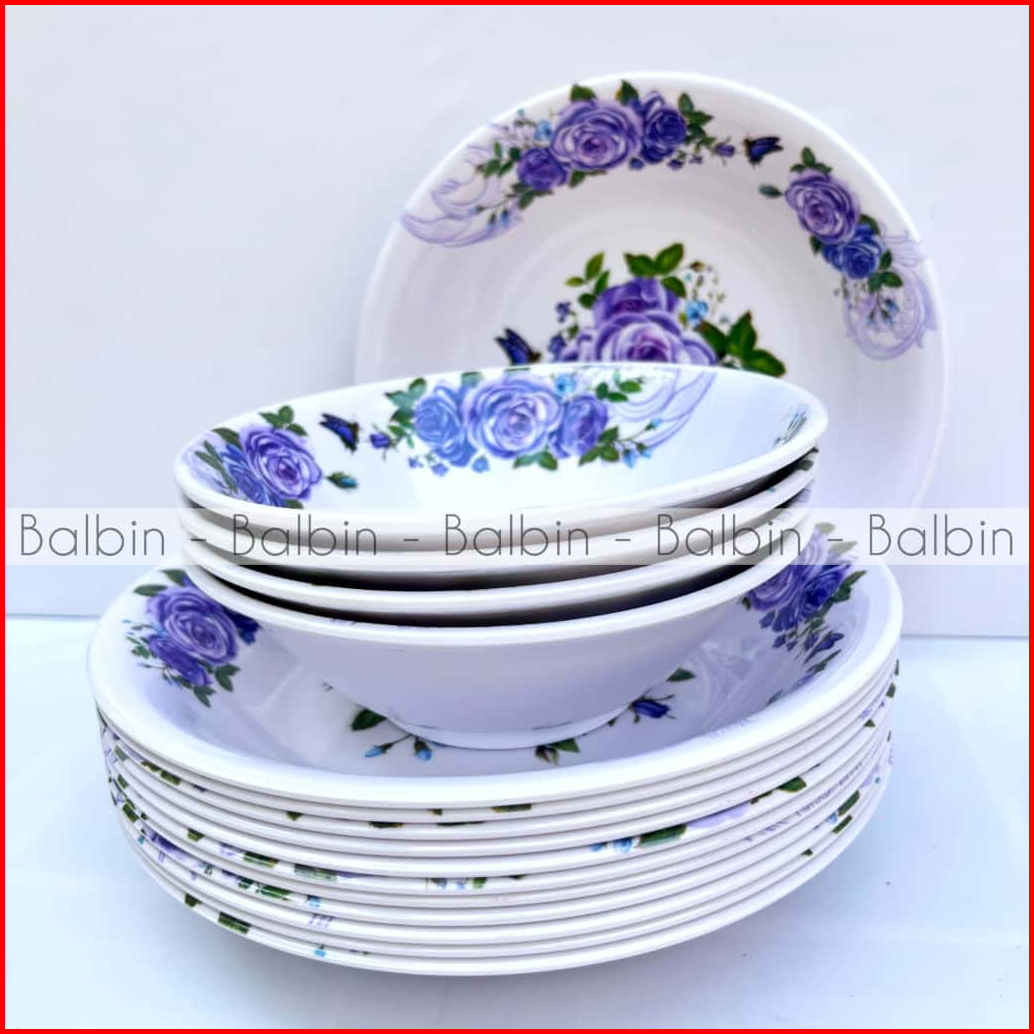 Paket Satu Set Melamin Isi 3 Piring Cekung Pl-519 Dan 3 Mangkuk Bulat Mb-7 Food Grade New Set Ungu