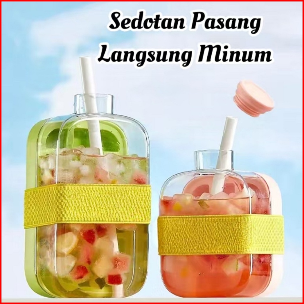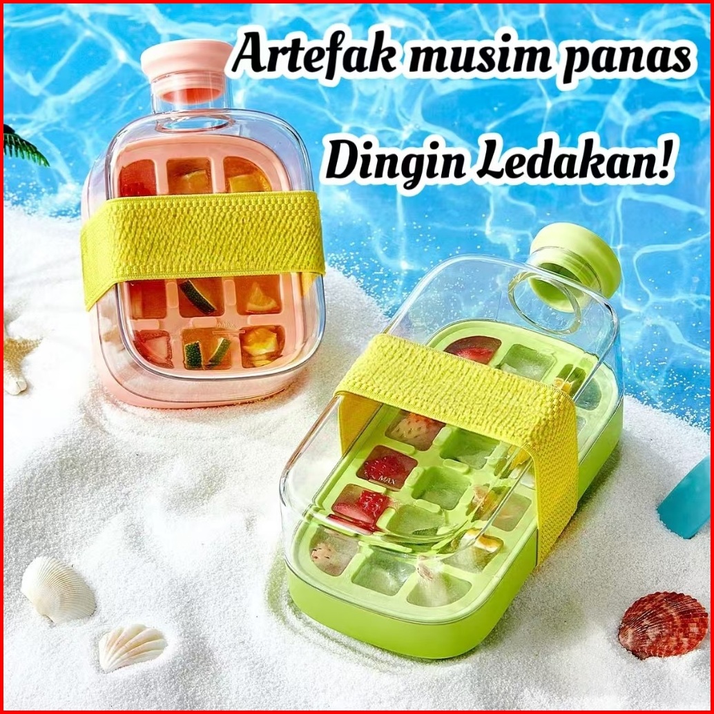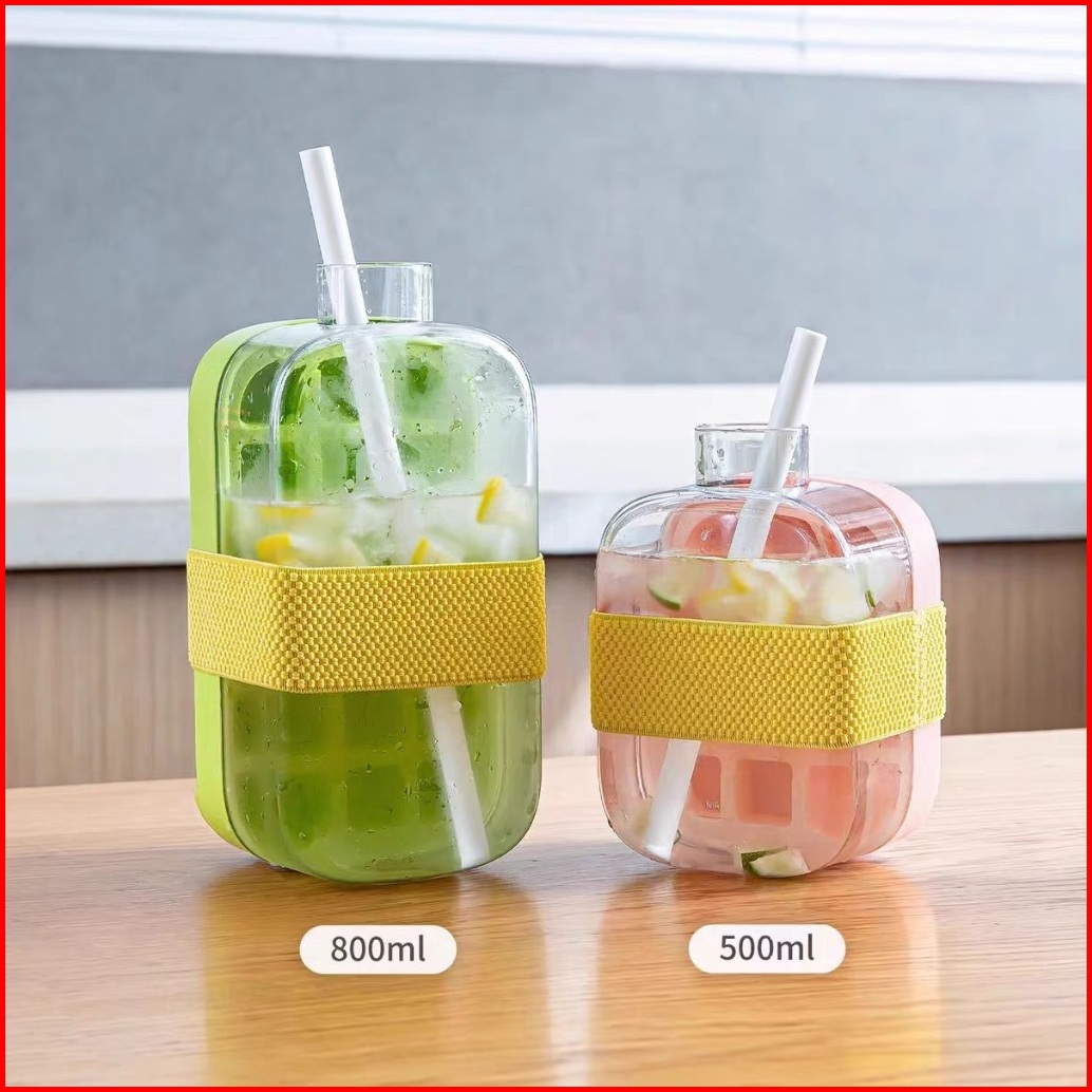 99khome Cetakan Es Batu 2in1 Botol Minum Cool Ice Mold Cube Bottle Pop Out Include Straw K1259