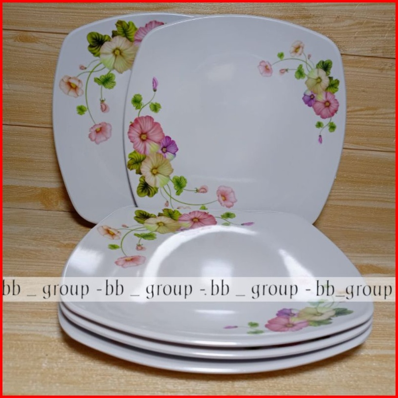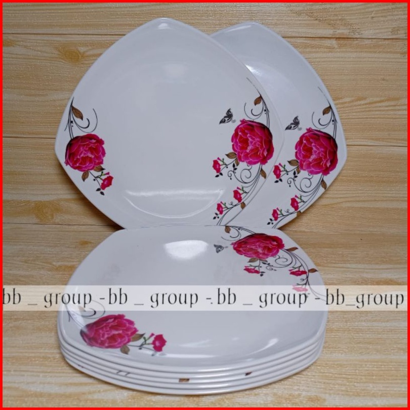 6 Pcs Piring Prasmanan Melamine Asli Segi 9inc Melamine Ware Motif Mawar