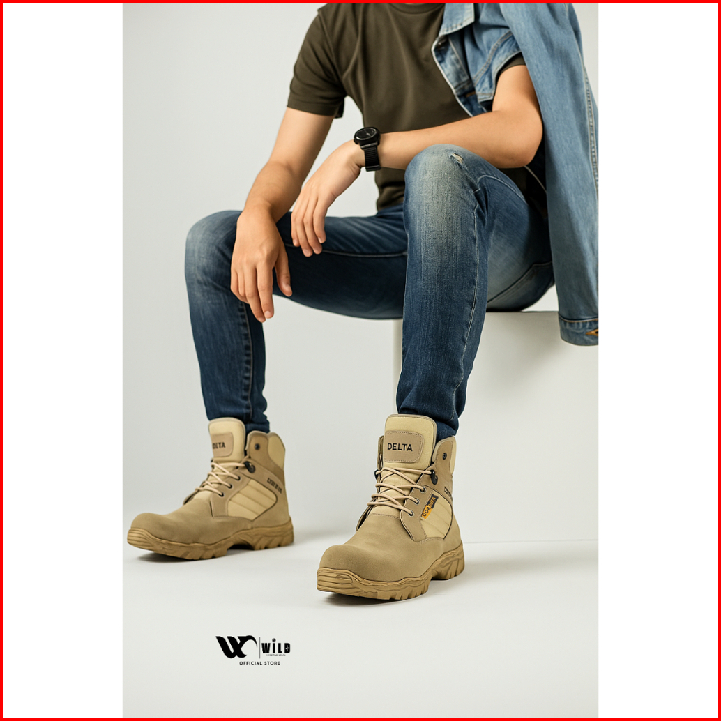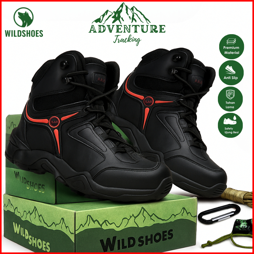 Sepatu Safety Pria Boots Tactical Military - Sepatu Pria Safety Boot Ujung Besi Outdoor Hiking Gunung Adventure - Wildsh