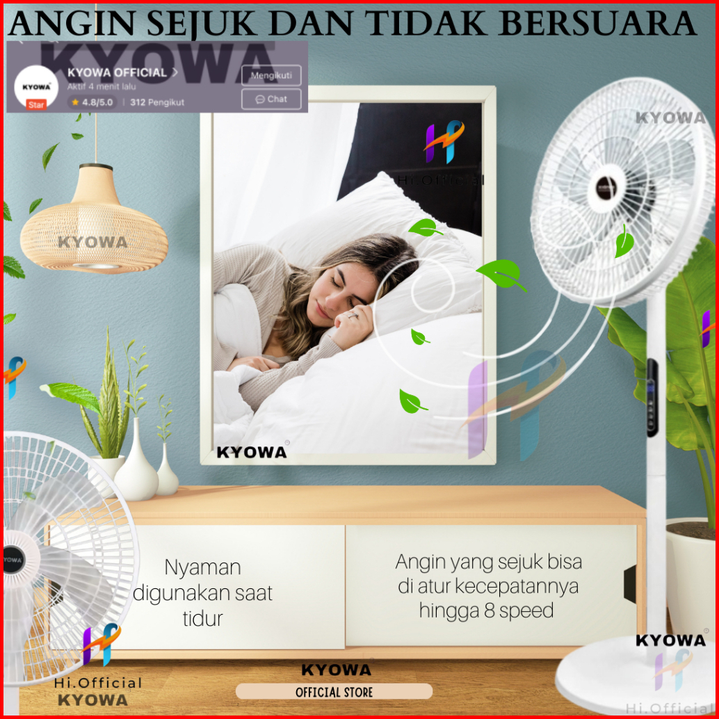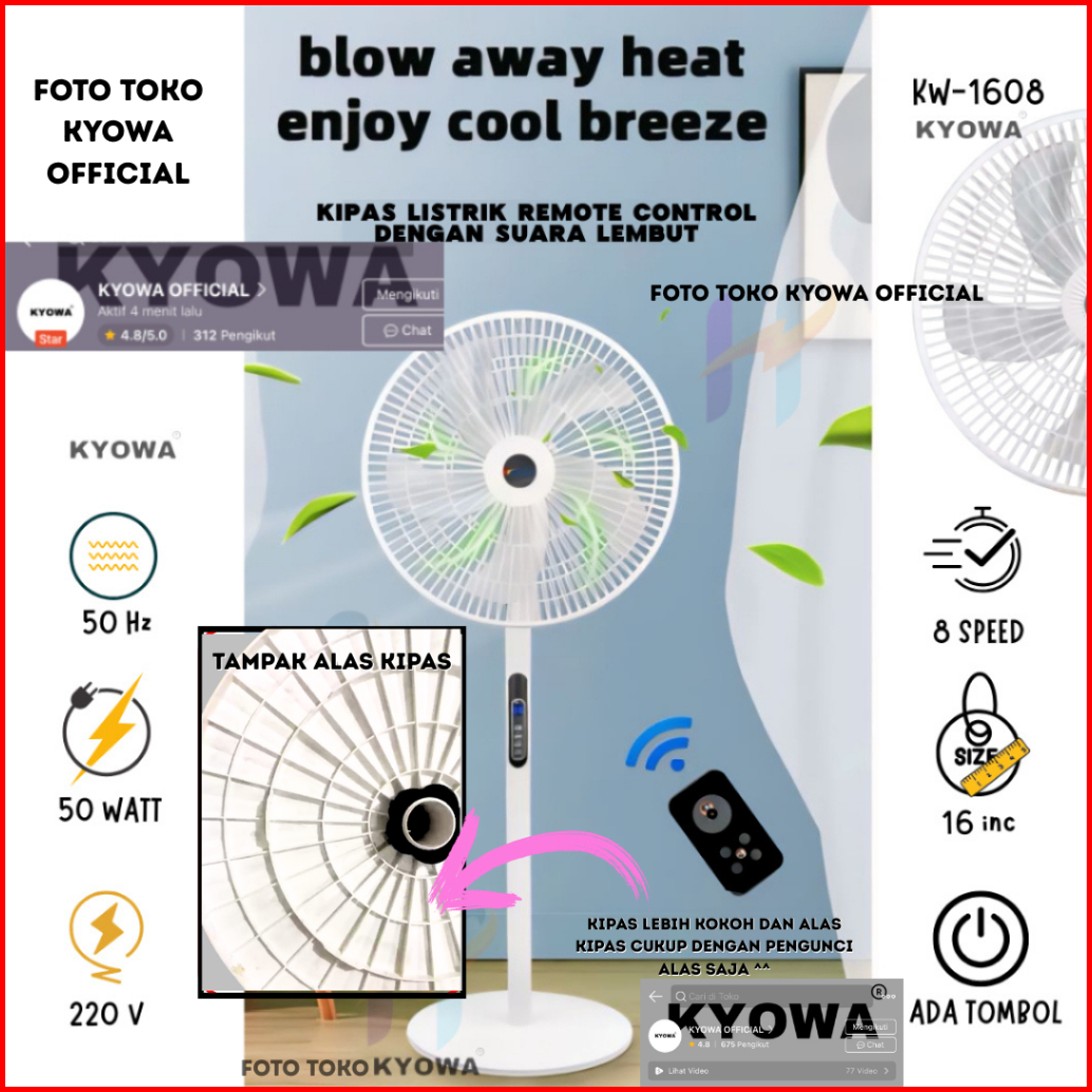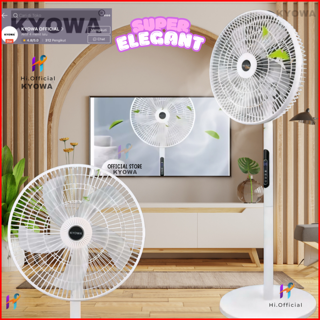 Kipas Angin Standing Kyowa Kw-1608a Kipas Berdiri Dengan Tutup 5 Baling Baling Kipas Remote Desain Modern