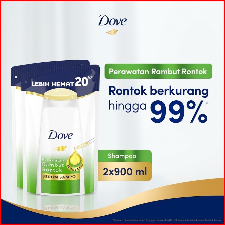 Dove Shampoo Perawatan Rambut Rontok Pouch 900ml X2