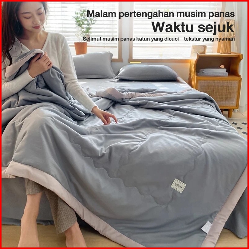 Selimut Katun Tipis Musim Panas - Ukuran 200x230cm Lembut Nyaman Bisa Dicuci Mesin Warna Netral