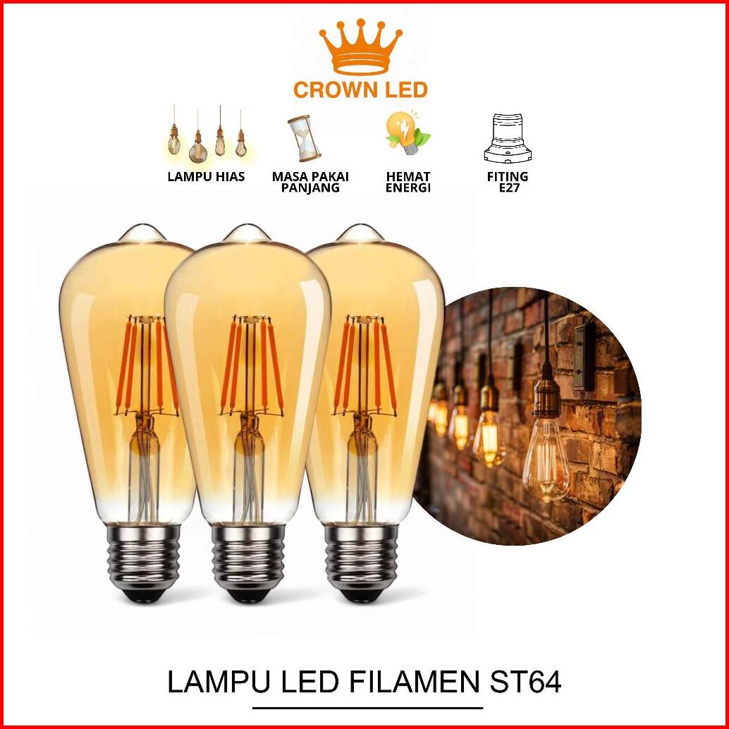 Lampu Filamen Led St64 Bulb 4w Bohlam 4 W Watt Pijar Edison Cafe Oval