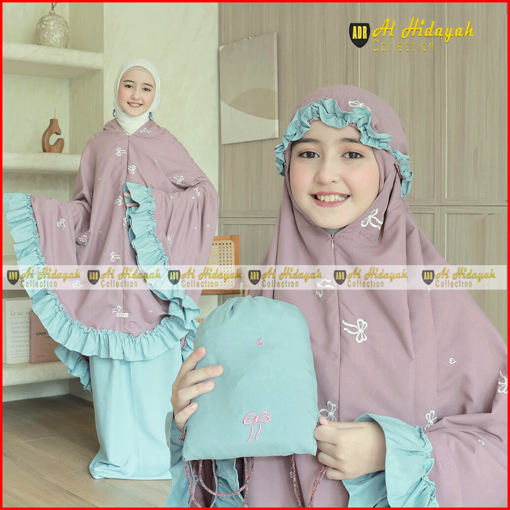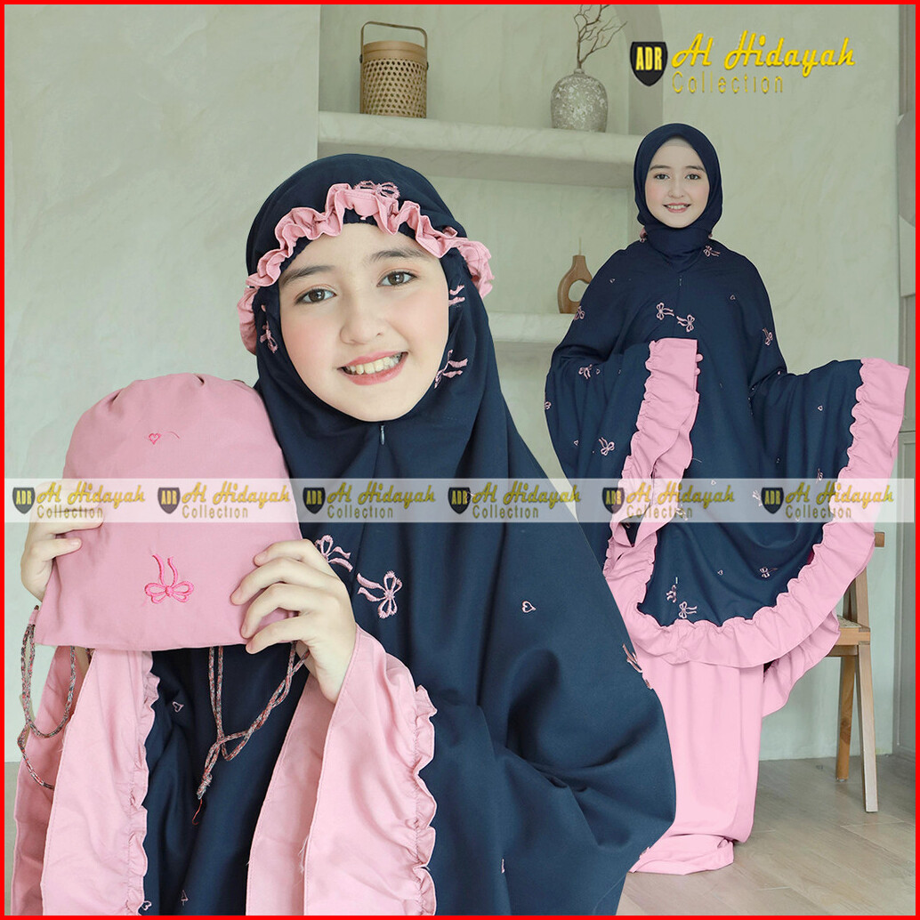 Mukena Anak Bordir Timbul Resleting Dagu 2 In 1 Katun Premium 5 6 7 8 9 10 11 12 13 14 15 Tahun Mukenah Tanggung Mewah S