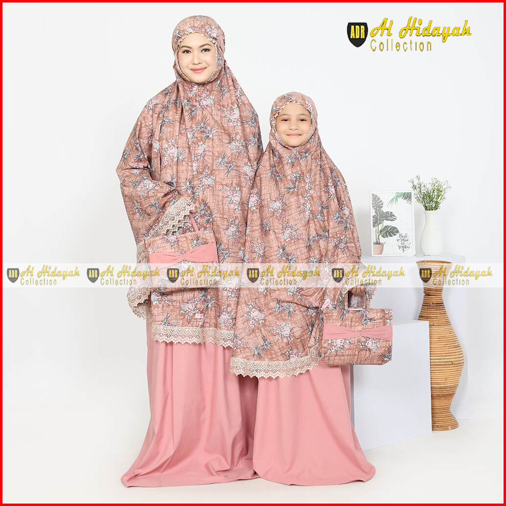 Mukena Couple Ibu Dan Anak Katun Motif Renda Mewah Jumbo Mukenah Premium Resleting Dagu