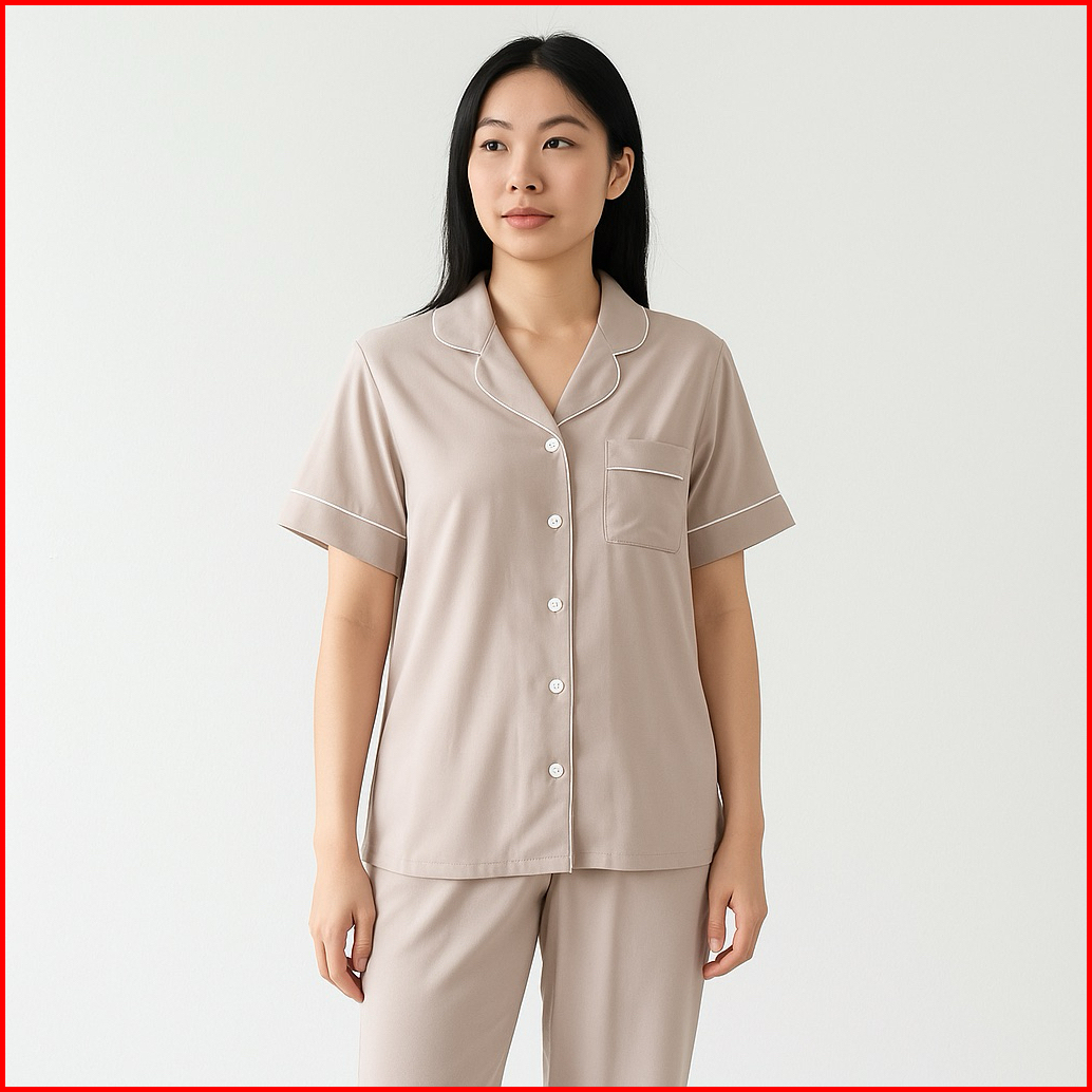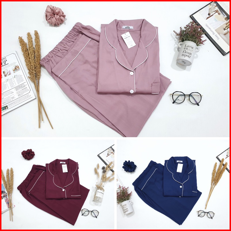 Piyama Tidur Wanita Super Fine Rayon Twill Celana Panjang Lengan Pendek Cp Rayon Ellie