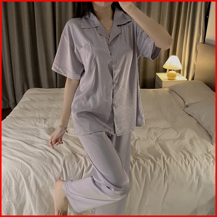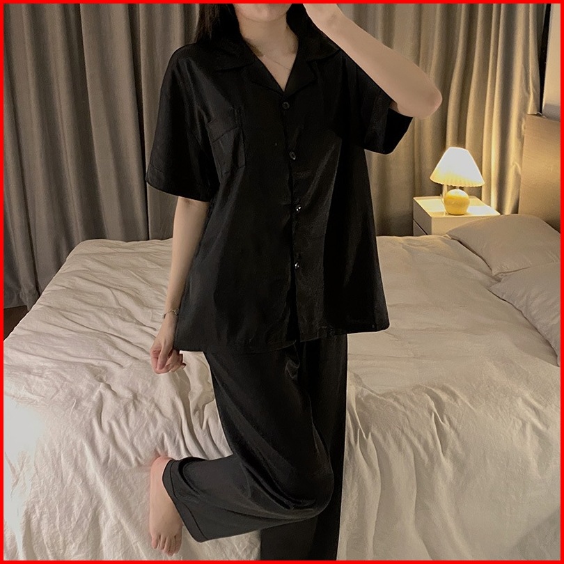 Tuta Piyama001 Wanita Sutra Es Kelas Atas Dengan Celana Panjang Dan Lengan Pendek Piyama Baju Tidur