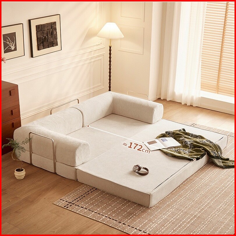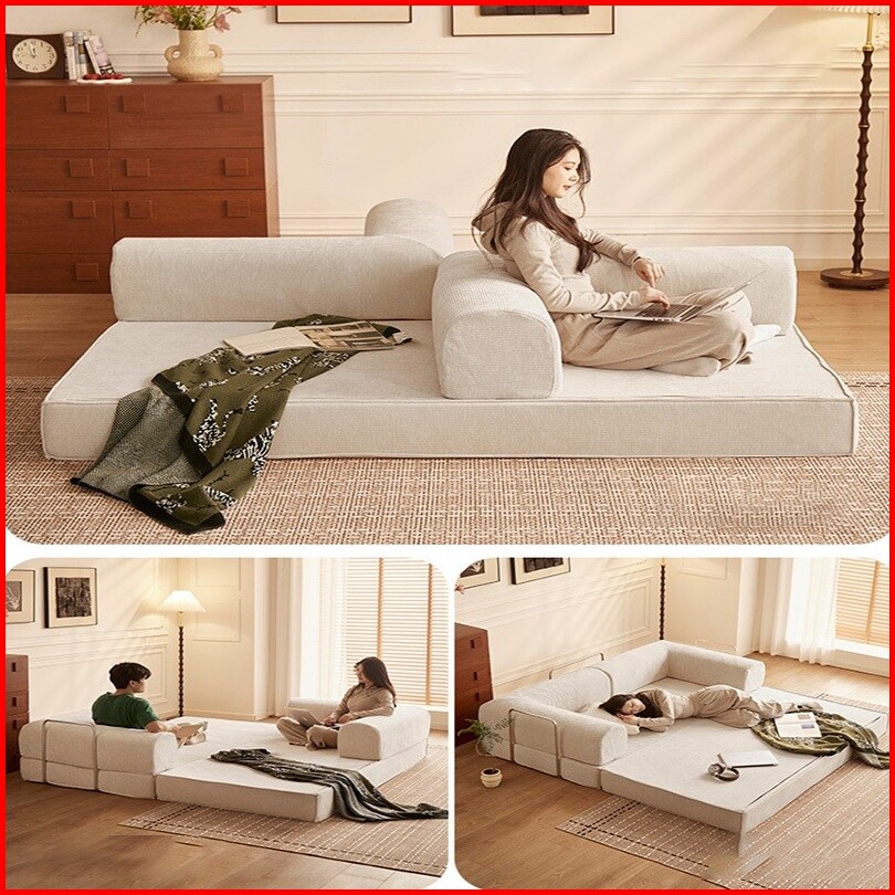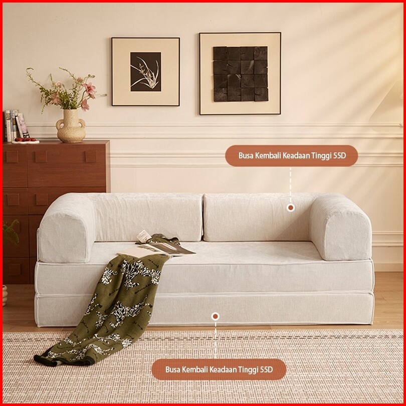 Sofa Bed Lipat 2-in-1 Minimalis - Super Nyaman Untuk Ruang Tamu Kos Warna Cream 200cm 100cm 68cm