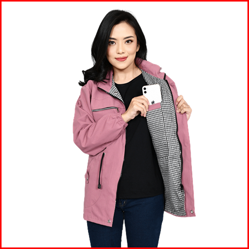 Jaket Wanita Tebal Premium Ori Korean Style Original Bahan Baby Canvas Warna Pink Dusty